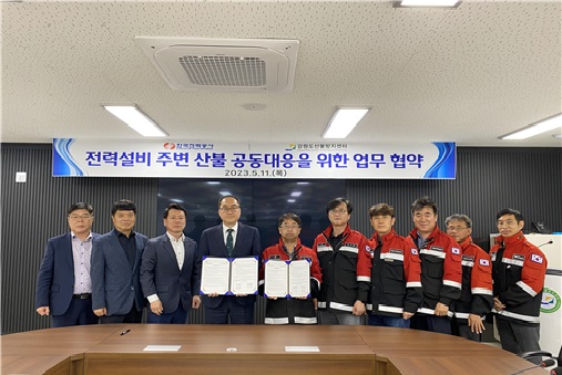 [강원사회복지신문 홍기한 기자]=강원도 ↔ 한국전력공사 강원본부 산불방지 공동협력하기로 강원도산불방지센터(소장 이광섭)와 한국전력공사 강원본부(본부장 황인목)는 지난 5월 11일 강원도산불방지센터(강릉시 연곡면) 회의실에서 '산불로부터 안전한 강원도 만들기'를 위한 상호협력을 목적으로 기관간 업무협약을 체결...