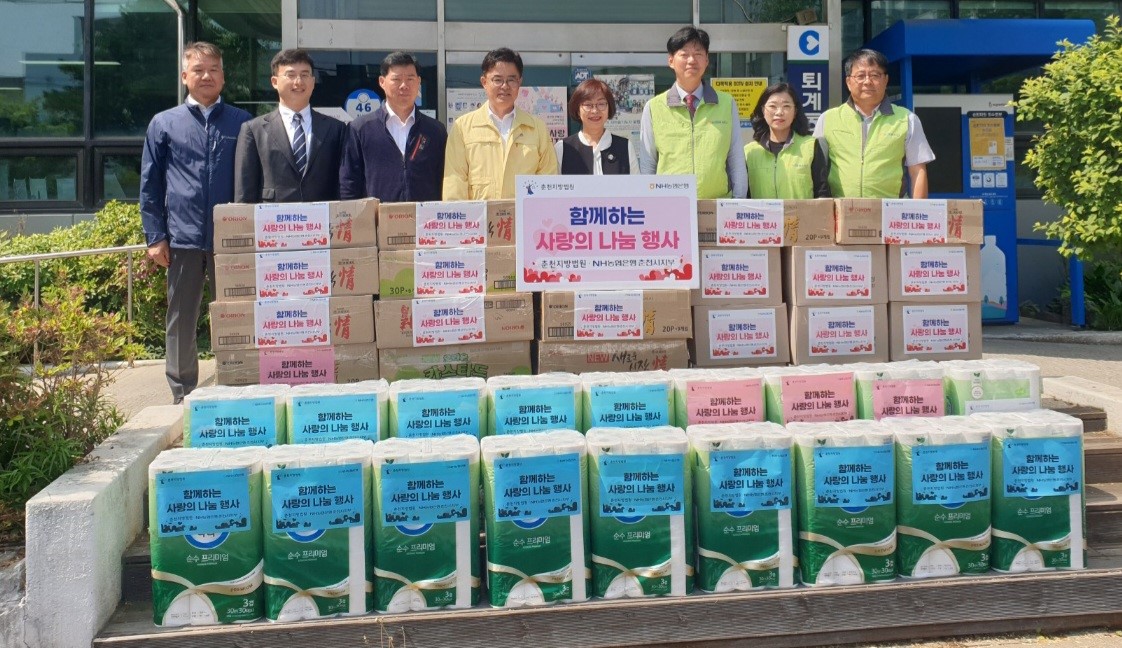 [강원사회복지신문 김도연 기자]=춘천지방법원(법원장 부상준)과 NH농협은행(춘천시지부장 김경선)은 지난 5월 11일 퇴계동행정복지센터(동장 윤행자)에 관내 소외계층을 위한 농산품 및 생활용품을 전달했다.