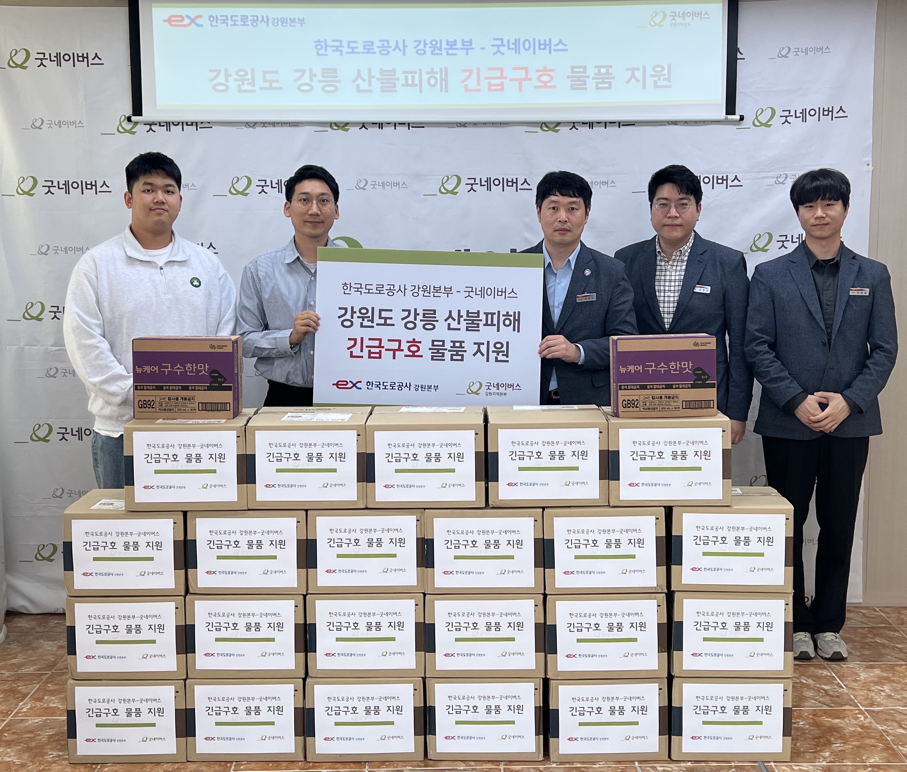 [강원사회복지신문 서은진 기자]=굿네이버스 강원지역본부(본부장 박미경)는 한국도로공사 강원본부(본부장 박재은)로부터 강릉 산불피해 이재민 지원을 위한 후원물품을 전달받았다고 지난 4월 20일(목) 밝혔다. 전달식은 굿네이버스 강원지역본부 사무실에서 진행됐으며 굿네이버스 강원지역본부 김재민 과장, 이윤원 대리...
