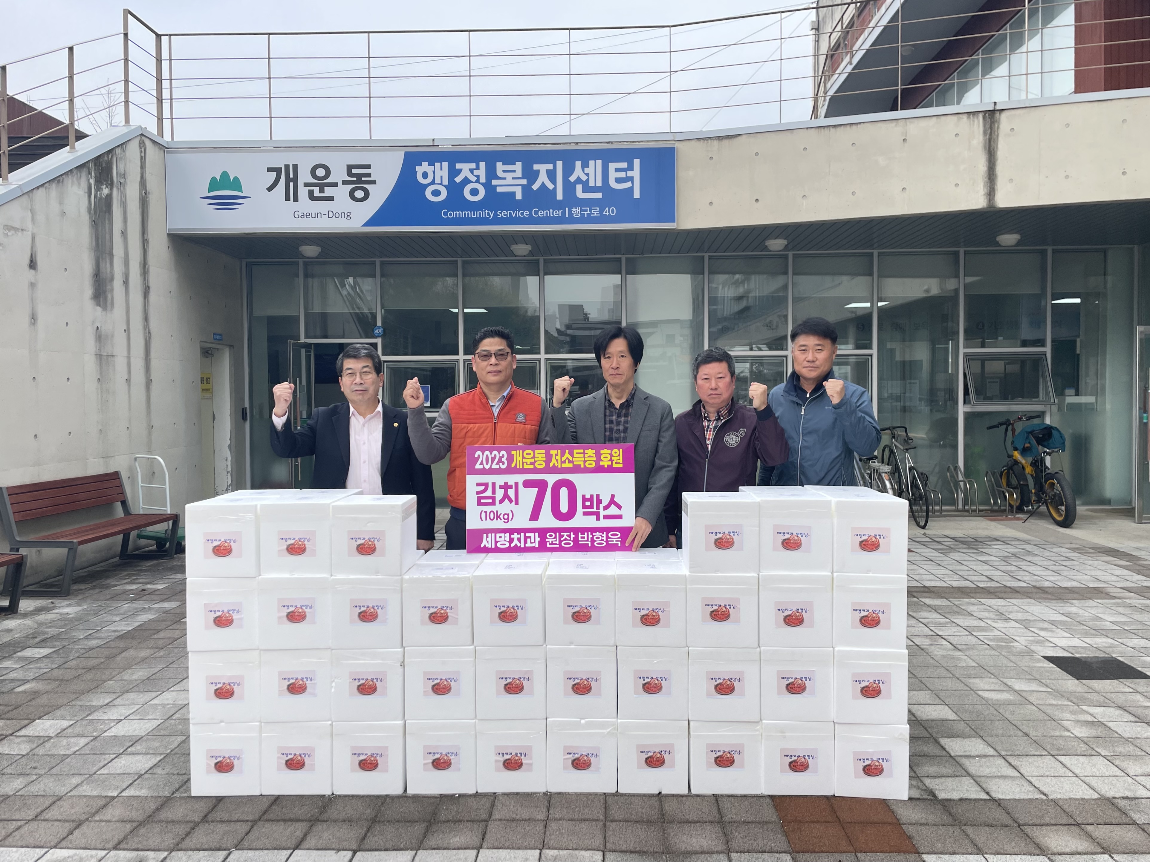 [강원사회복지신문 김도연 기자]=세명치과(원장 박형욱)는 지난 4월 7일 원주시 개운동 지역사회보장협의체(민간위원장 송이만, 공동위원장 김성식)에 김치 및 사골곰탕 세트 70박스를 기탁했다. 후원물품은 관내 저소득 가정에 전달될 예정이다. 박형욱 원장은 "취약계층을 위한 김치 나눔 봉사를 꾸준히 실천할 수 있어 보...