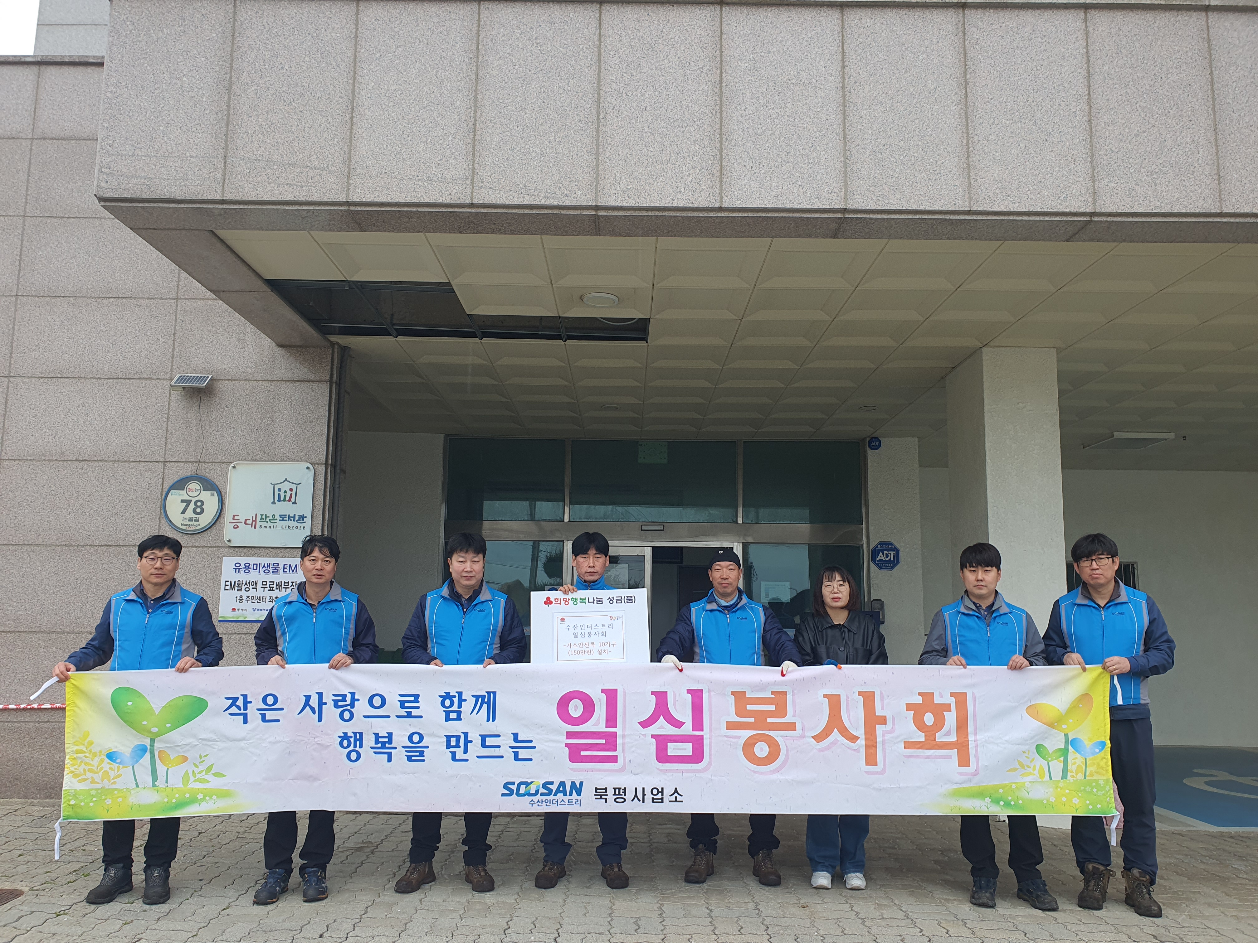 저소득 10가구 대상으로 LED등 교체와 가스안전타이머를 설치 동해시 소재 (주)수산인더스트리 북평사업소 직원들로 구성된 일심 봉사회(회장 곽상진)에서는 지난 4월 3일 동해시 묵호동 저소득 10가구를 대상으로, LED등 교체와 가스안전타이머를 설치하는 봉사 활동을 펼쳤다. 전기 자격증을 보유하고 있는 직원들이 묵호동...