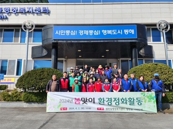 동해시 발한동 사회단체는 최근 새봄맞이 환경정화활동을 펼쳤다. 지난 4월 2일 진행된 환경정화 활동은 발한동통장협의회 외 7개 단체 약 30여 명이 참석, 발한삼거리~중앙시장~관사길, 묵호역사거리~향로동 등 발한동 전 구역의 도로변 적치 쓰레기와 방치된 생활쓰레기 약 1.2톤을 정리·수거하였다.