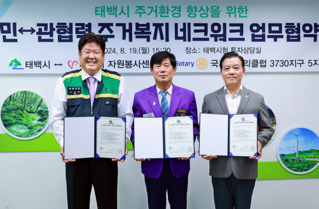 태백시(시장 이상호)는 지난 8월 19일 태백시청 투자상담실에서 태백시자원봉사센터, 국제로타리클럽 3730지구 5지역과 태백시 주거환경 향상을 위한 ‘민↔관 협력 주거복지 네트워크 업무협약’을 체결하였다고 밝혔다. 이번 업무협약은 사각지대에 놓인 주거 취약계층에 다양한 민간 자원 연계를 통한 주거 안정 및 지원을...