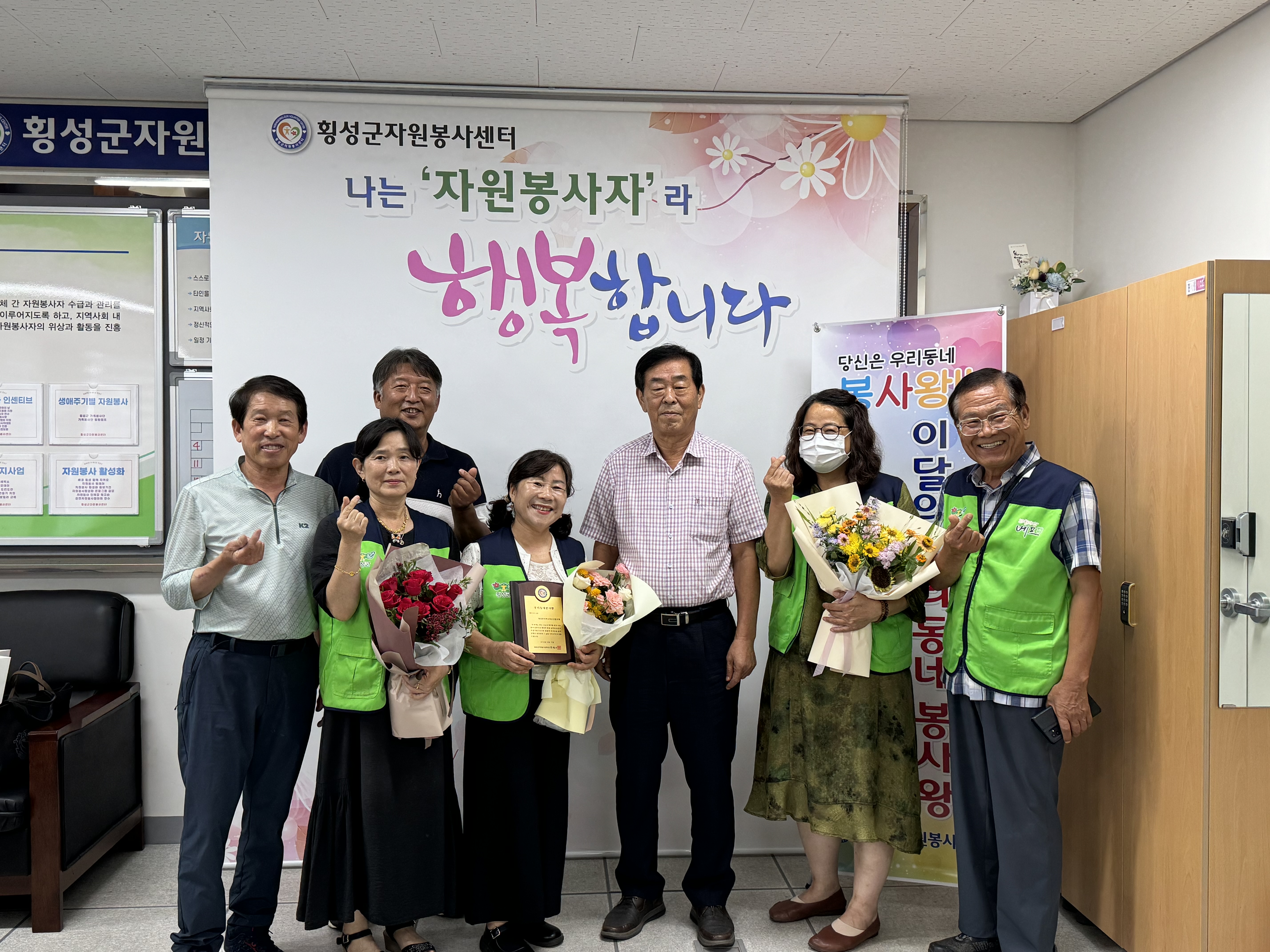 횡성군자원봉사센터(센터장 한재수)는 지난 8월 21일 횡성군 자원봉사센터 사무실에서 ‘우리동네 봉사왕 시상식’을 갖고 8월 우리동네봉사왕에 청일면지역사회보장협의체(회장 박순애)를 선정했다. 선정된 청일면지역사회보장협의체는 취약계층 물품 전달, 반찬 나눔 활동과 은빛 대학 식사 지원 등을 통해 다양하게 봉사하...