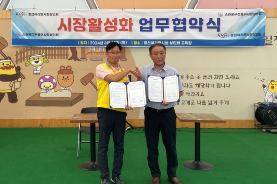 정선아리랑시장(회장 김부흥)과 인천 소래포구전통어시장(회장 안광균)은 지난 8월 22일 전통시장 활성화를 위해 정선아리랑시장 고객지원센터에서 자매결연 협약을 체결했다. 협약에 따라 두 시장은 전통시장 활성화를 위한 상인·상인회 임원의 상호교류, 주요 특산물의 직거래를 포함한 5대 사업을 추진할 계획이다. 이날...