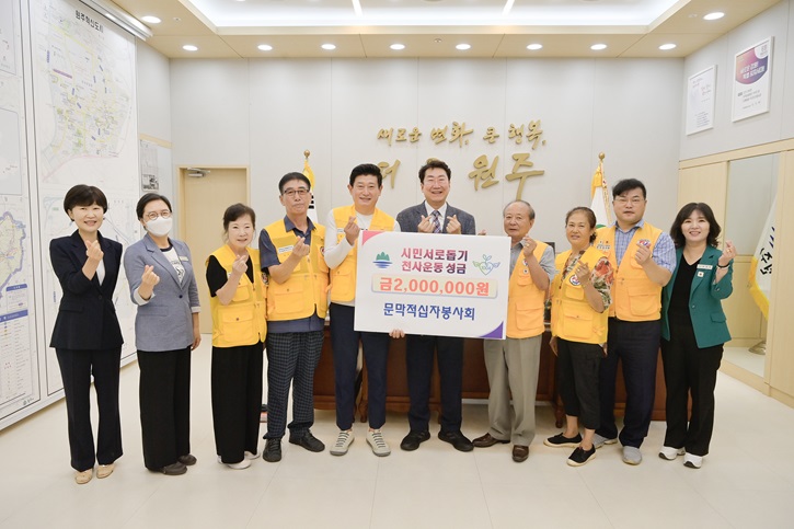 차상위계층(370세대)에 월 18만 원 생계비 지원 원주 문막적십자봉사회(회장 곽희운)는 지난 8월 22일 오전 10시 원주시장 집무실에서 천사운동 후원금 200만 원을 기탁했다. 이날 전달식은 원강수 원주시장을 비롯하여 곽희운 회장과 김기붕·이창선·신정숙·김현길·최성우 회원 및 천사운동 관계자 등이 참석했다. 곽희운...