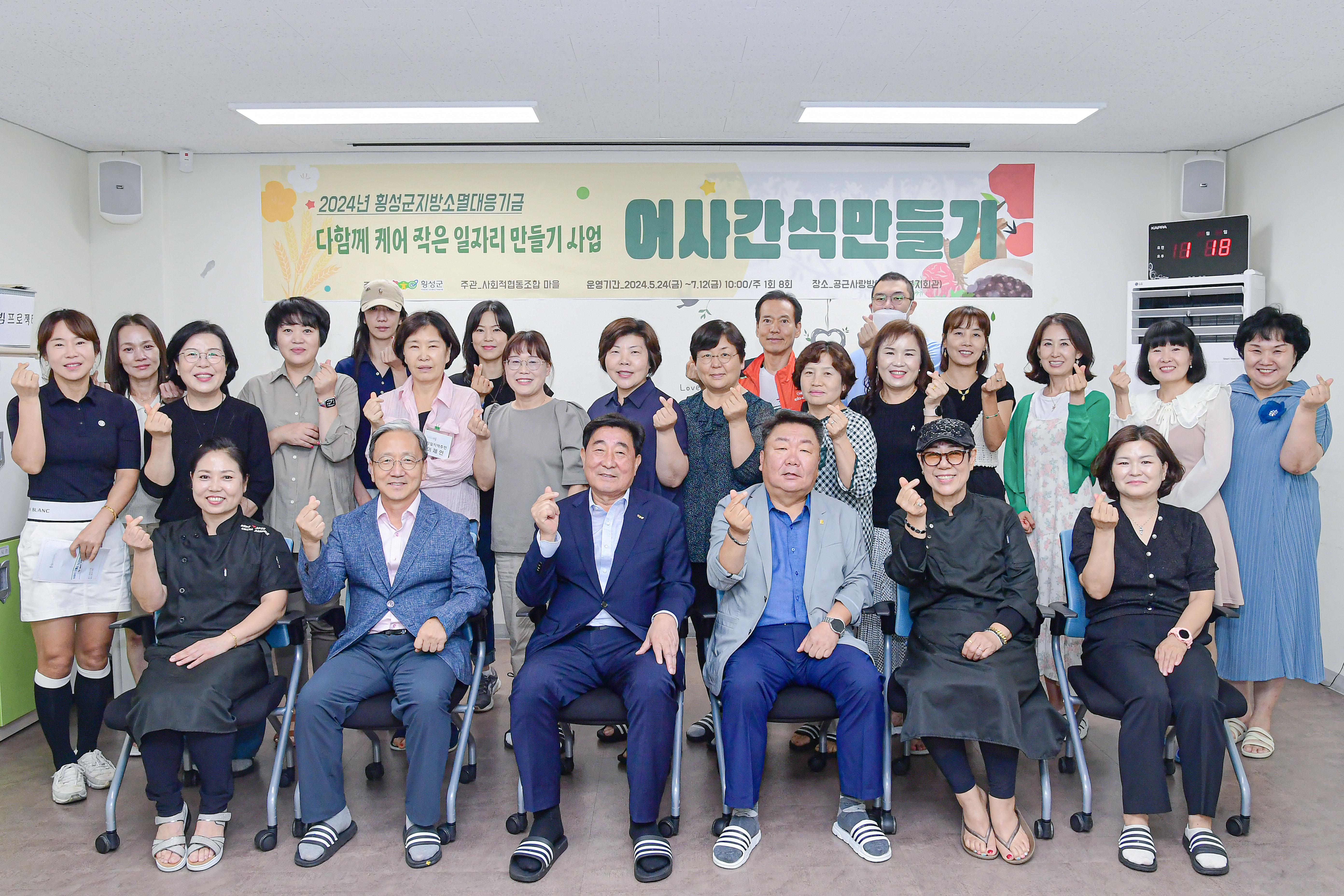 횡성군이 지방소멸 대응사업으로 추진해 온 ‘튼튼먹거리 어사간식 만들기 교실’ 수료식이 7월 19일 11시 마을교육공동체 공근사랑방에서 개최됐다. 이날 수료식에는 김명기 횡성군수, 심영택 횡성교육지원청 교육장이 참석하여 13명의 교육생에게 수료증을 수여했다. 횡성군이 주최하고 사회적협동조합‘마을’에서 주관한...