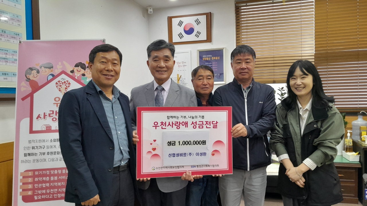 신협성비료 이성환 상무이사는 횡성군 우천면 지역 어려운 이웃을 돕기 위해 지난 4월 16일 우천면 행정복지센터를 방문하여 우천사랑에기금에 성금 100만 원을 전달했다. 이성환 상무이사는 이전에 우천면 농협에 근무한 인연이 있으며, 우천면지역사회보장협의체 위원을 통해 우천사랑애기금을 알게 되어 선행에 동참하게 ...