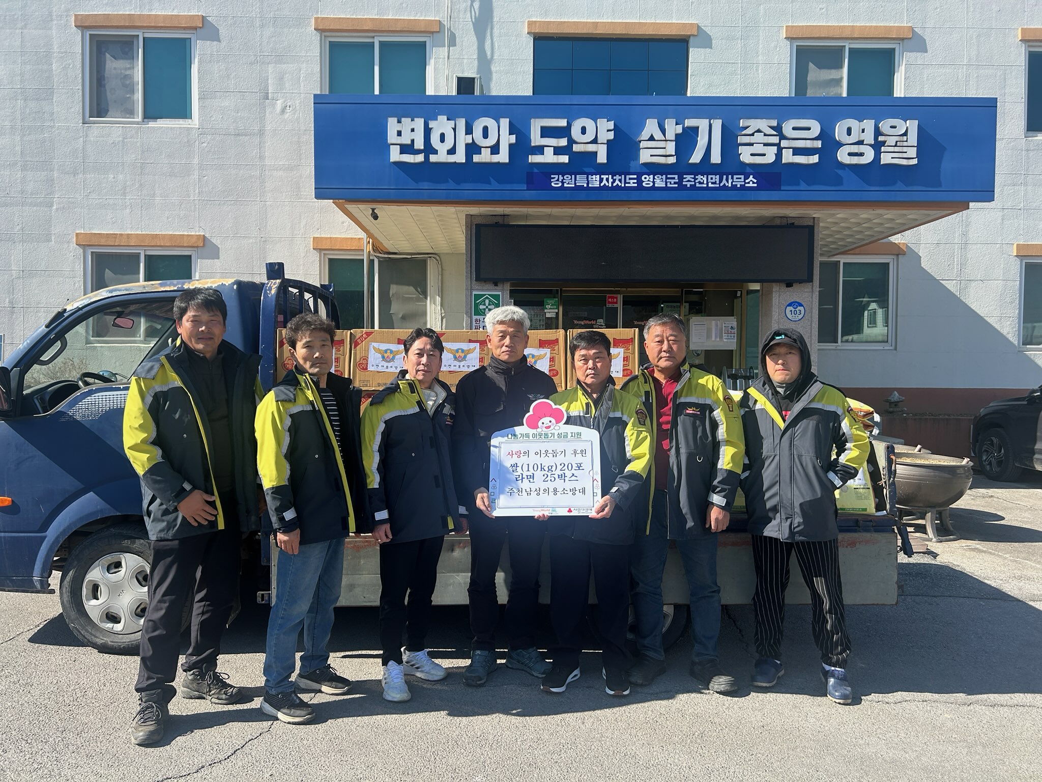 영월군 주천남성의용소방대(회장 원용구)는 2월 20일 주천면사무소를 방문해 관내 복지사각지대 발굴에 힘써달라며 쌀 20포와 라면 25박스를 기탁했다.