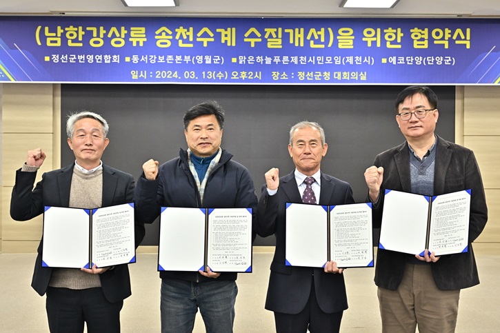 정선군 번영연합회(회장 전상걸)는 도암댐 발전 방류로 인해 생태계 훼손과 수질 오염을 겪었던 남한강상류 송천수계 수질개선을 위한 업무 협약을 체결했다고 지난 3월 13일 밝혔다. 이번 협약식은 남한강 도암댐 하류 주민들의 생존권을 위협하는 댐내 화학약품 사용을 통한 수질관리를 반대하며 댐내 퇴적물 처리방안과 수...