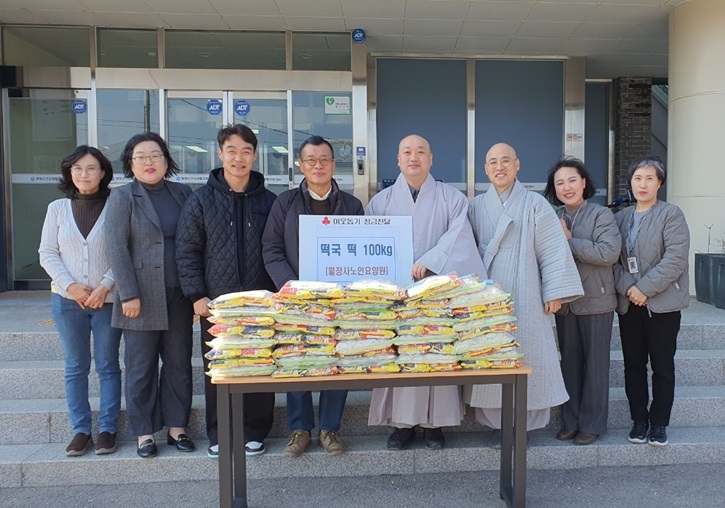 평창군 진부면 지역사회보장협의체(위원장 김남섭, 우강호) 위원인 전이복 월정사노인요양원장은 지난 3월 13일 오대산 상원사(주지 해량스님)와 자원연결을 통해 떡국 떡 100kg을 방문원격협진 취약계층 100가구에게 전해달라며 진부면 건강생활지원센터에 전달하였다.
