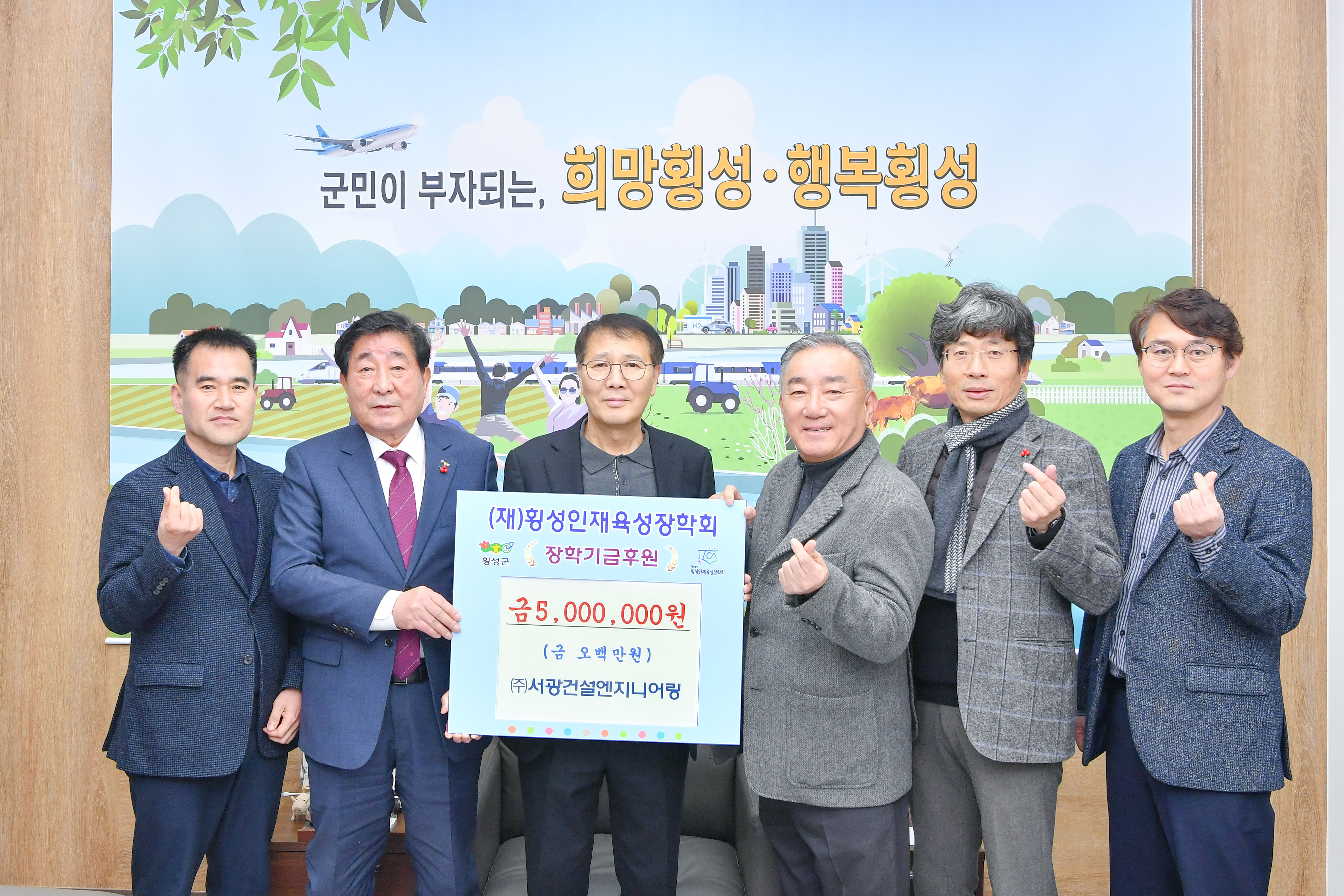 (주)서광엔지니어링(대표 김진수)은 1월 21일 오후 5시30분 횡성군청을 방문해 지역인재육성을 위한 장학금 5백만 원을 횡성인재육성장학회에 기탁했다.