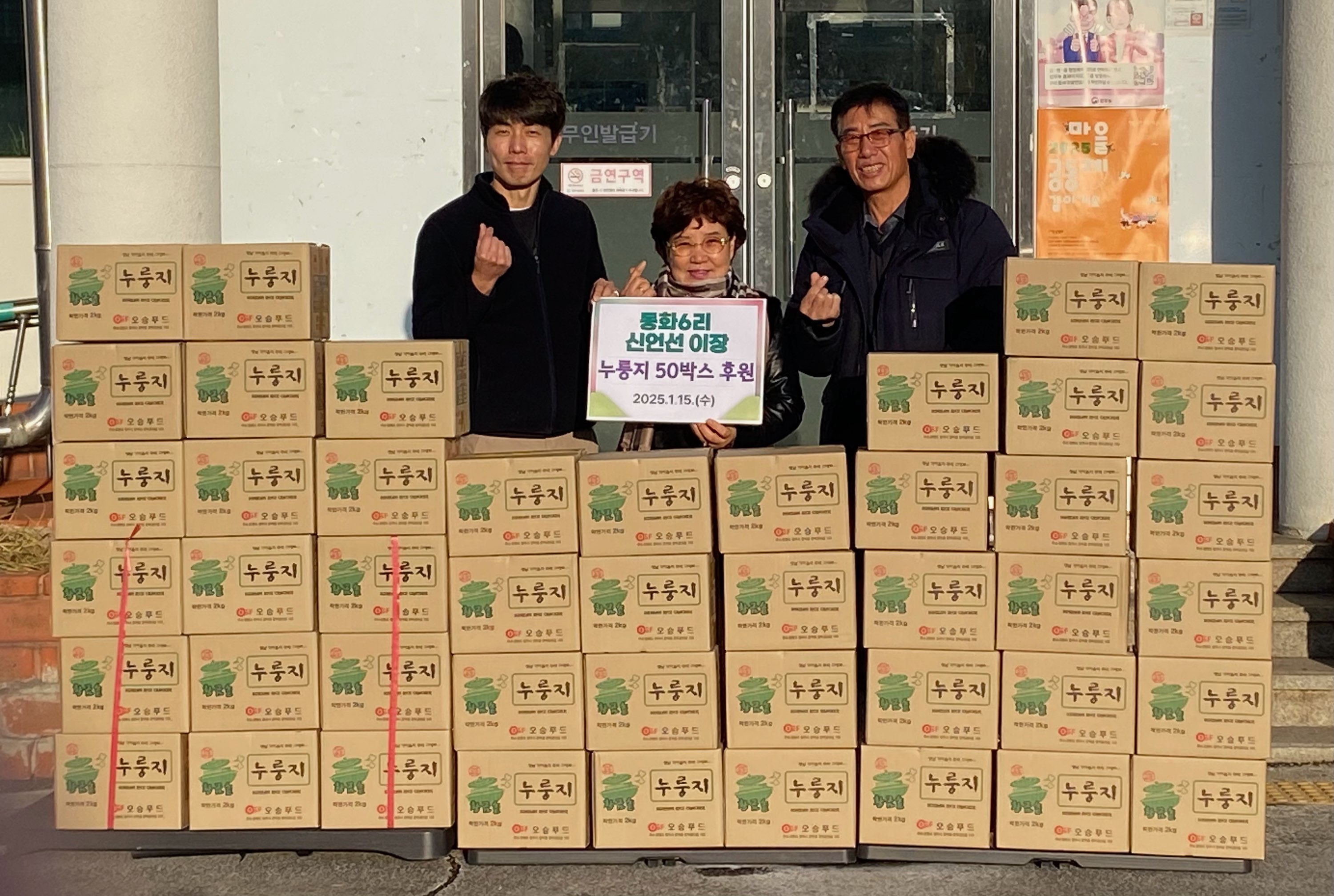 원주시 문막읍 동화6리 신언선 이장은 지난 1월 15일 문막읍 행정복지센터를 방문해 누룽지 50박스를 문막읍지역사회보장협의체에 기탁했다. 신언선 이장은 매년 식품과 생활용품을 읍 지역사회보장협의체에 기탁하며 선행을 이어오고 있다. 기부받은 물품은 문막읍지역사회보장협의체 사랑의 나눔곳간과 저소득층 가정 및 독...