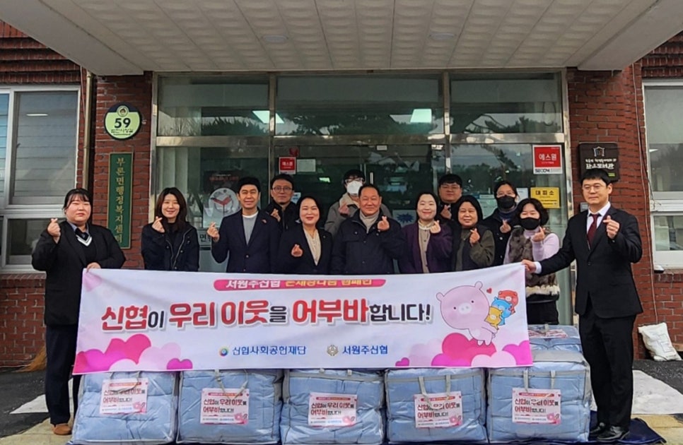 서원주신협(전무 김은경)은 지난 1월 14일 원주시 부론면 행정복지센터를 방문해 겨울이불 32채를 후원했다. 겨울이불은 부론면에 거주하는 독거노인 및 저소득 소외계층에 전달될 예정이다.