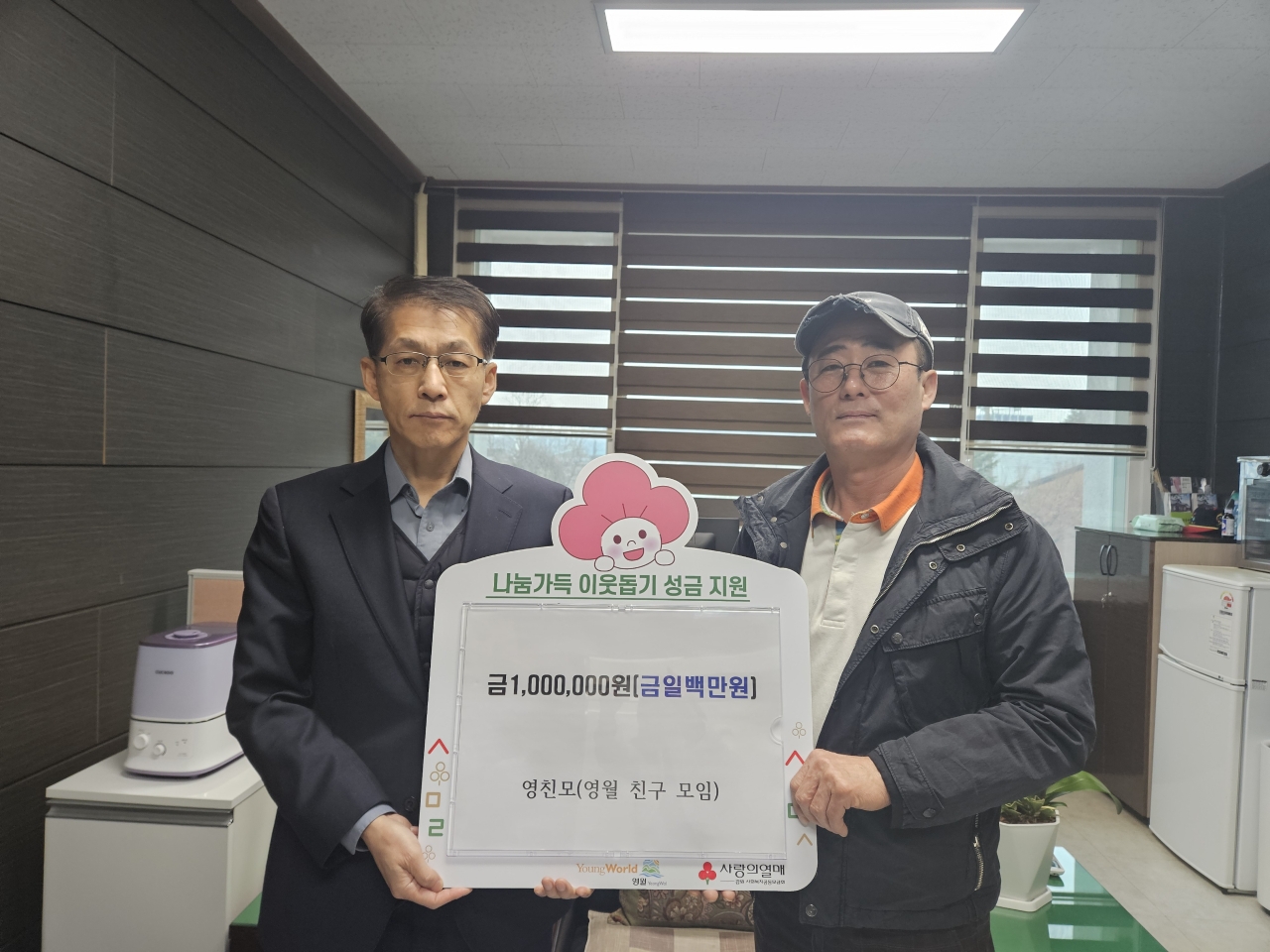 (주)휴네시온(대표 정동섭)과 (주)에스오넷(대표 박용복)은 1월 15일 16시10분 횡성군청을 방문해 ‘희망2025나눔캠페인’ 성금 250만 원을 공동 기탁했다.