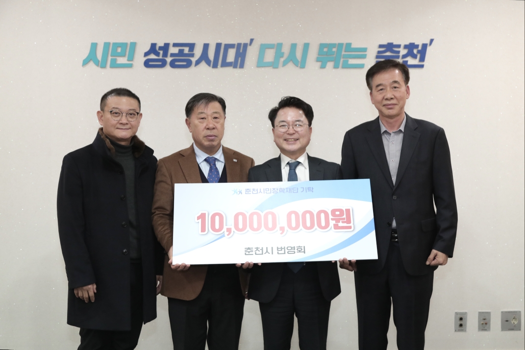 춘천시 번영회는 지난 12월 30일 접견실에서 장학금 1,000만 원을 (재)춘천시민장학재단에 기탁했다.