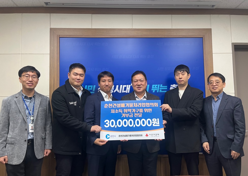 춘천 건설폐기물처리업 협의회는 지난 12월 30일 춘천시 부시장실에서 기부금 3,000만 원을 춘천시에 전달했다.