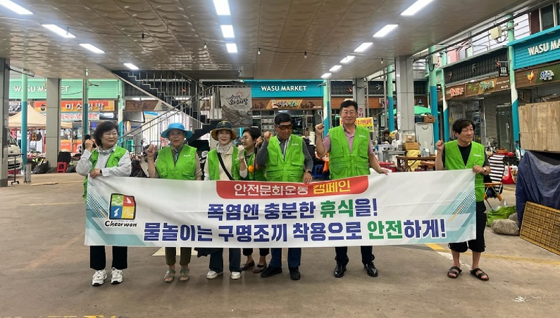 철원군은 최근 철원군 지역자율방재단·안전보안관과 합동하여 와수전통시장에서 철원 주민을 대상으로 ‘여름철 폭염 및 물놀이 안전사고 예방’ 홍보캠페인을 실시했다고 밝혔다. 이번 캠페인에서는 생활 주변의 위험요인을 주민 스스로 점검하고 확인하는 안전의식 확산과 특히 여름철 발생하기 쉬운 물놀이 안전사고 및 ...