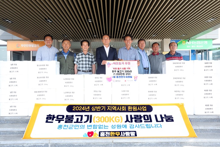 재단법인 홍천한우사랑말(대표 나종구)은 지난 6월 27일 홍천군청을 방문하여 이웃돕기 성품으로 한우 불고기 300kg(1,050만원 상당)을 기탁했다. 나종구 대표는 “많지 않은 물품이지만 사랑말한우 불고기가 어려운 이웃들에게 작은 힘이라도 보탬이 되었으면 한다.”라고 말하며, “항상 지역 사회와 상생하며, 후원과 사회...