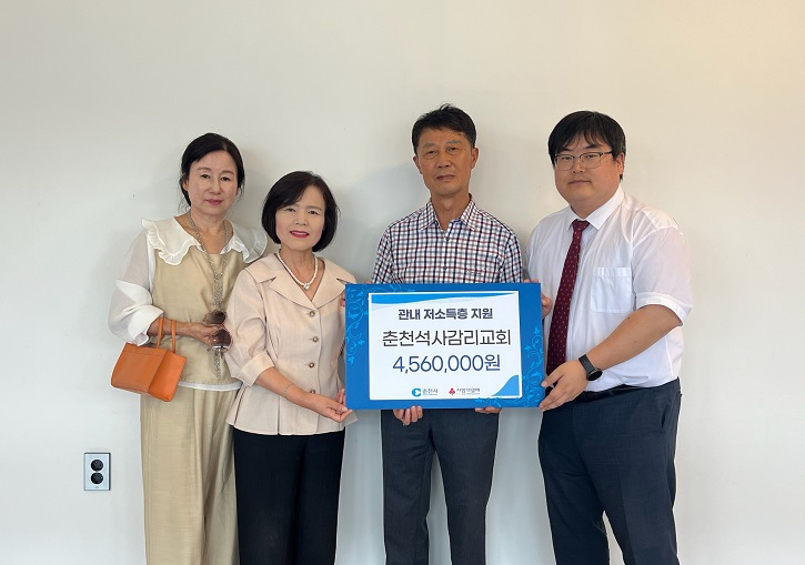 춘천석사감리교회(담임목사 손학균)가 지난 6월 26일 석사동행정복지센터(동장 박성숙)를 방문해 저소득층을 위한 성금 456만 원을 전달했다.