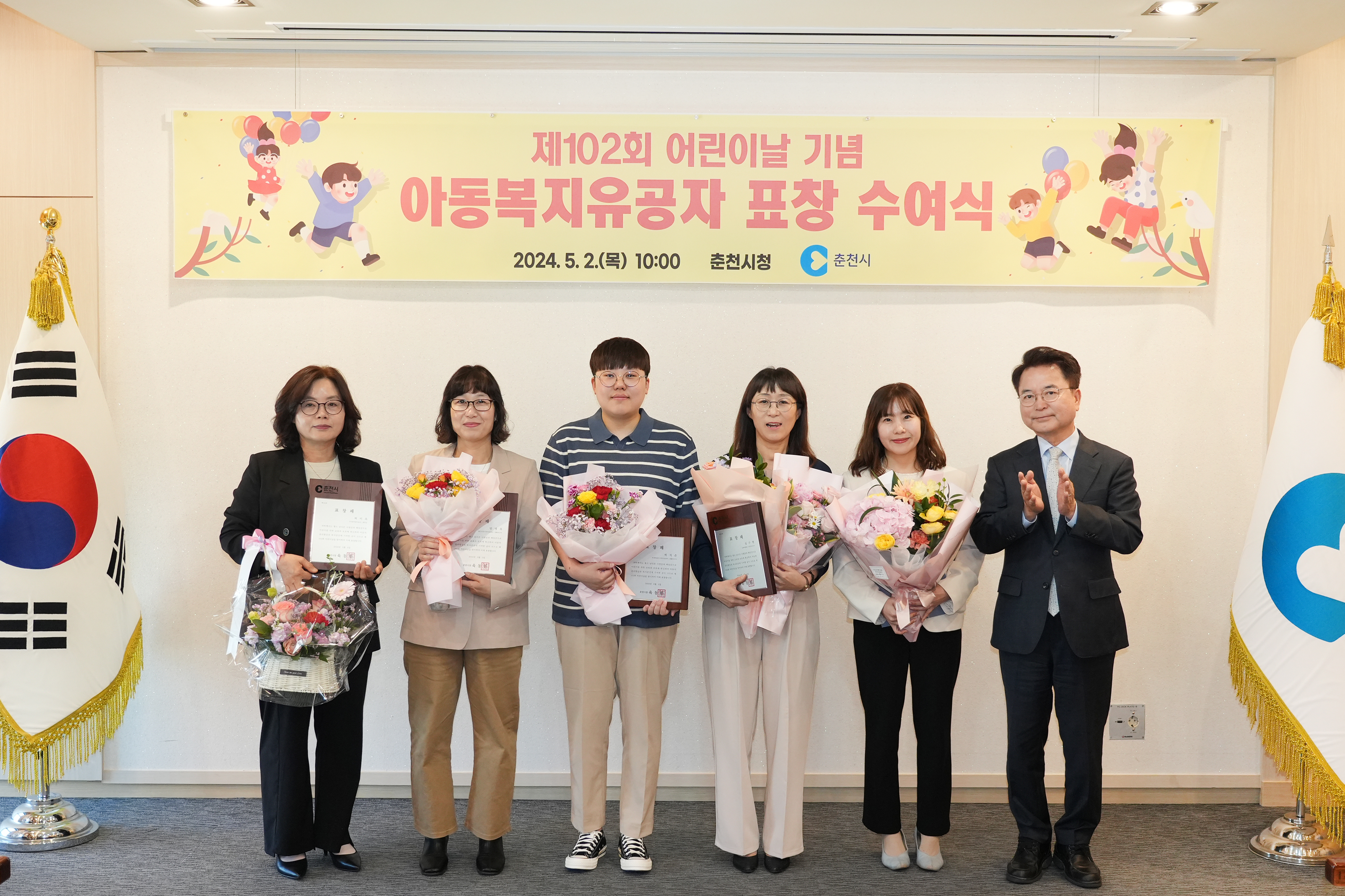 춘천시는 지난 5월 2일 접견실에서 102회 어린이날을 앞두고 아동복지 유공자에 대해 표창장을 수여했다.