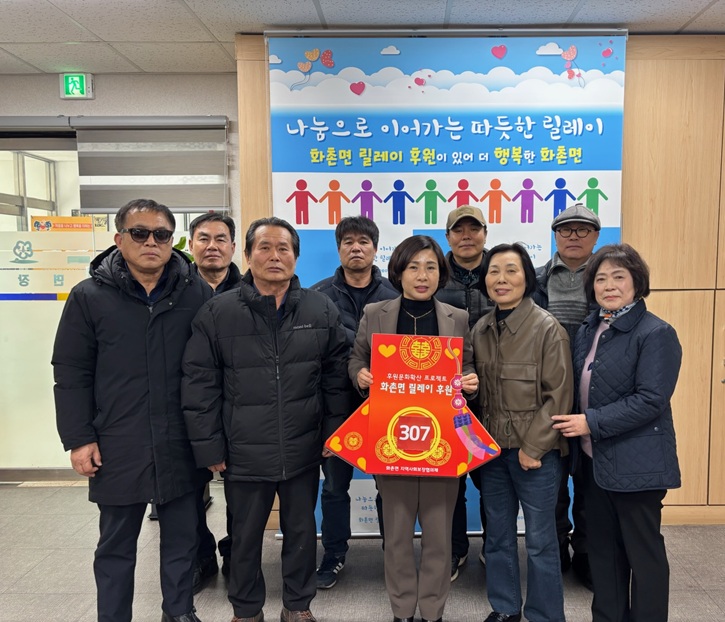 화촌면 지역사회보장협의체가 후원문화 확산을 위해 추진 중인 ‘화촌면 릴레이 후원’에 화촌면 지역사회보장협의체(박정임·강은수 공동위원장)가 307번째 주자로 참여하며, 지역사회에 소중한 나눔을 실천했다. 이번 후원은 지역사회보장협의체 위원들이 직접 회의 참석 수당을 모아 기부하기로 뜻을 모으면서 더욱 의미 ...