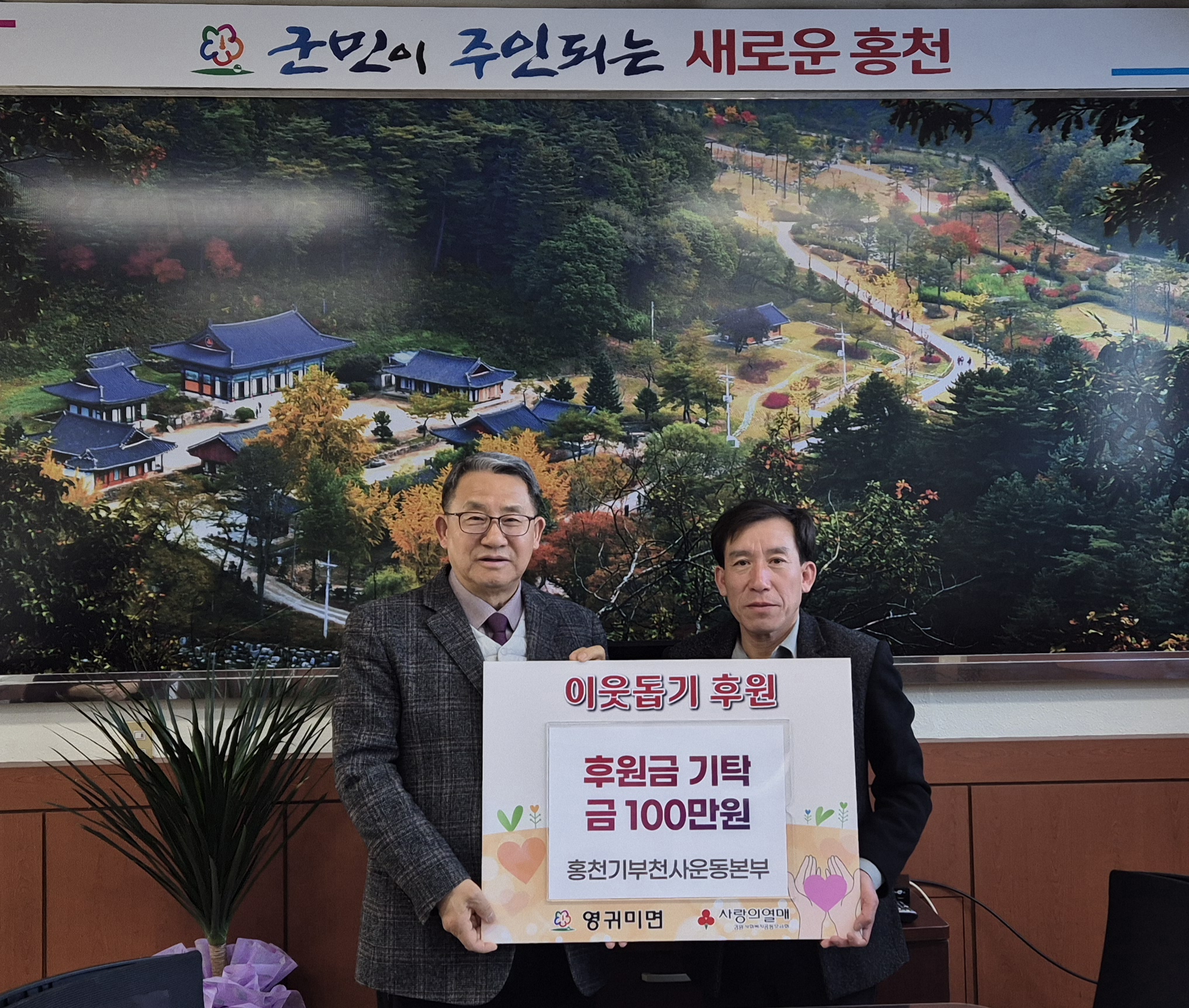 홍천기부천사운동본부(대표 이민수)에서 2월 19일 홍천군 영귀미면 행정복지센터를 방문해 어려운 이웃을 위한 후원금 100만 원을 기탁했다.