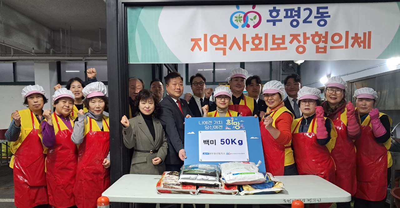 사단법인춘천청년회의소(회장 최성기)는 지난 3월 4일 후평2동행정복지센터(동장 이명숙)에 방문해 취약계층을 위한 백미 50kg을 후평2동지역사회보장협의체(위원장 박정임)에 기부했다.