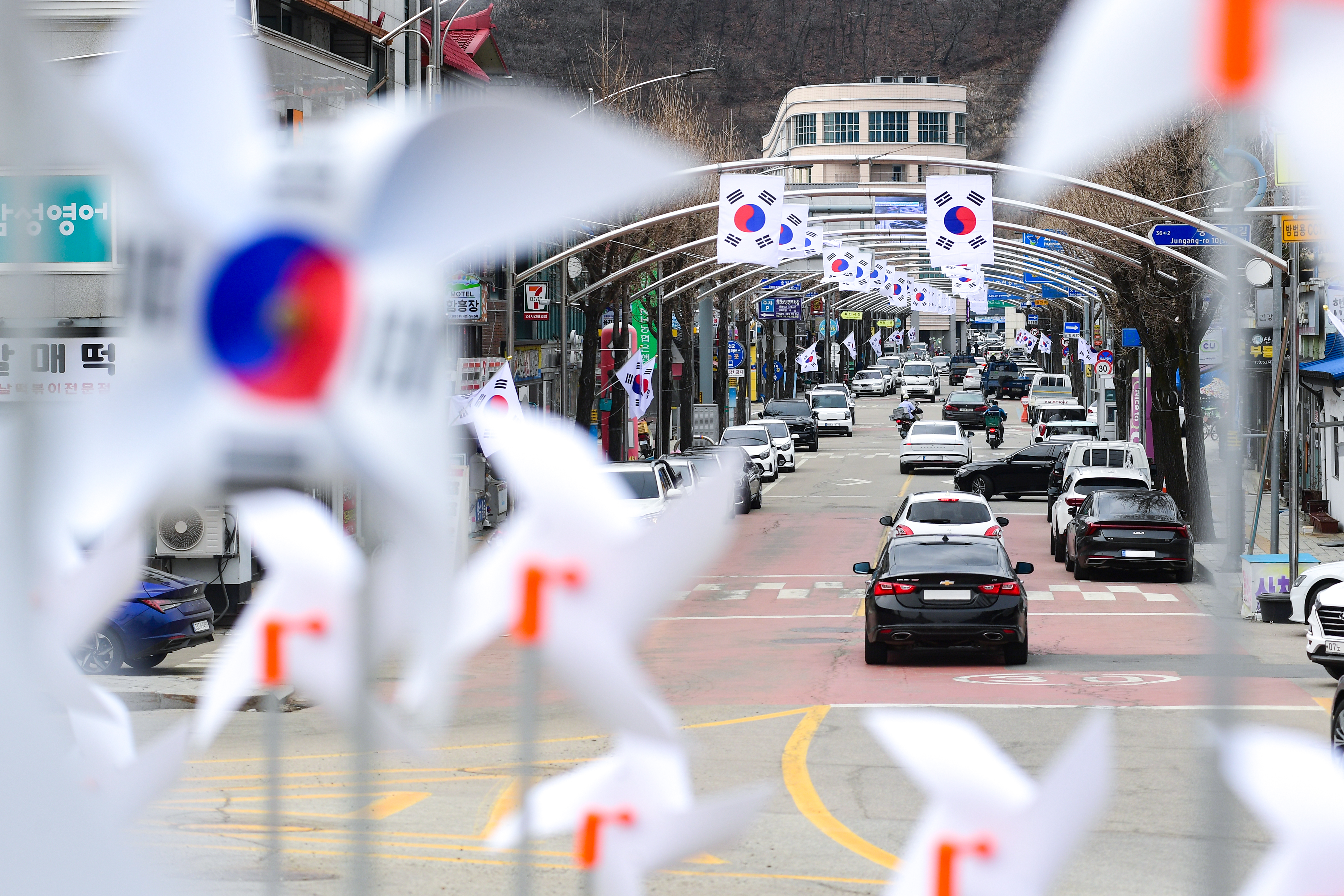 제105주년 3.1절을 이틀 앞둔 지난 2월 28일, 화천군 화천읍 중앙로 일대에 게양된 태극기가 바람에 휘날리고 있다. 화천지역에서는 1919년 3월23일부터 약 3,500여명 이상의 군민들이 일제에 항거하며 치열한 만세운동을 전개했다. 그 결과 175명이 체포됐고, 수많은 사람들이 옥고를 치루기도 했다. 화천군은 이를 기리기 ...