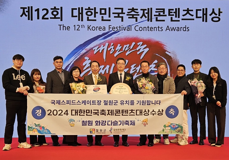 철원 화강 다슬기 축제가 지난 2월 22일(목) (사)한국축제콘텐츠협회(회장 차정현)에서 주관하는 ‘2024년 대한민국축제콘텐츠대상’ 축제콘텐츠 부문 대상을 수상하였다. 철원군은 지난해 철원 한탄강 얼음트레킹축제 명예의 전당상에 이어 철원 화강 다슬기축제까지 축제콘텐츠대상에 수상하는 영예를 안았다. 화강 다슬기...