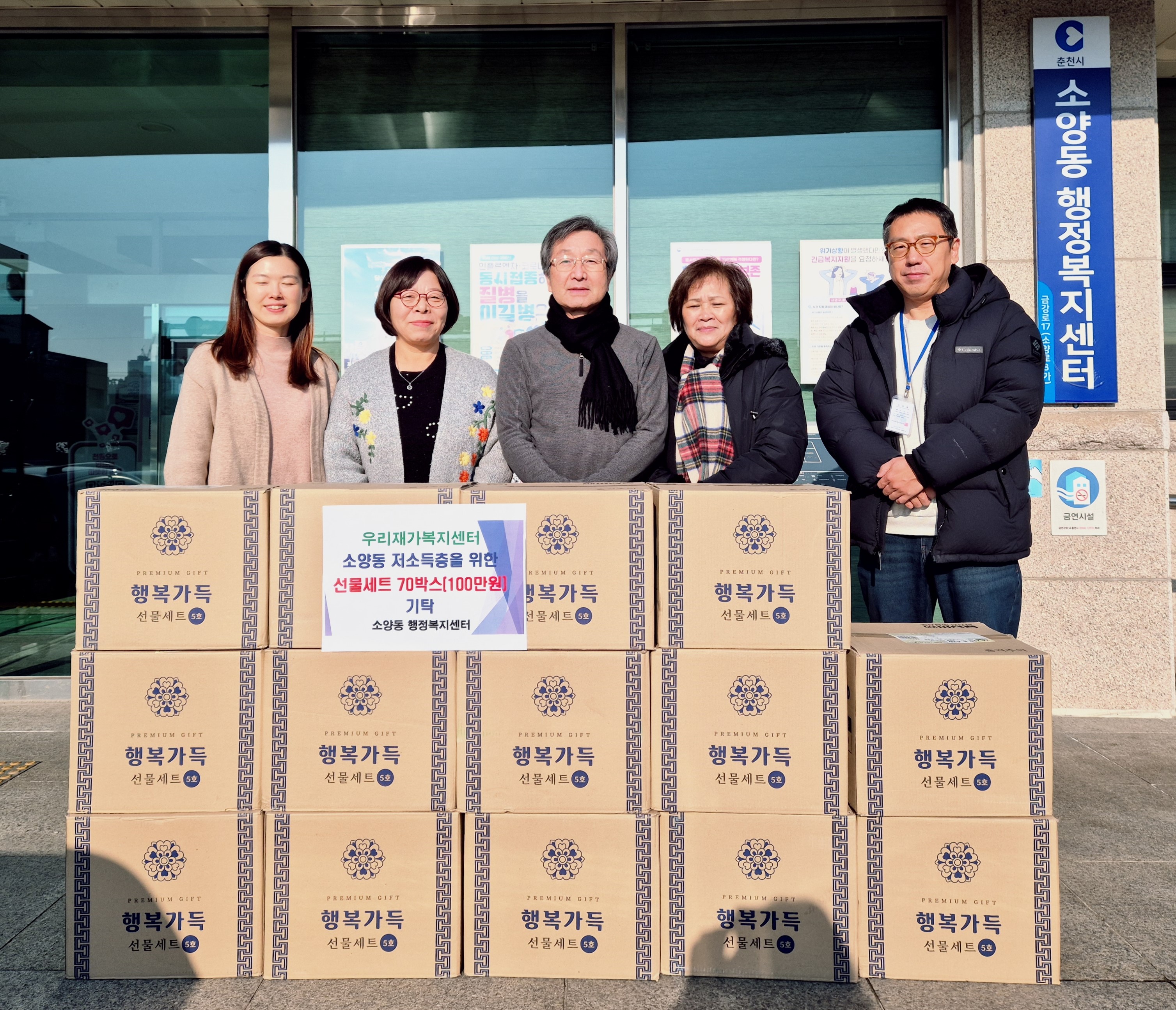 우리재가복지센터(센터장 박순희)는 1월 17일 춘천시 소양동 행정복지센터(동장: 조남훈)를 방문하여 관내 저소득층에 100만 원 상당의 물품(간장·참기름)을 전달했다.