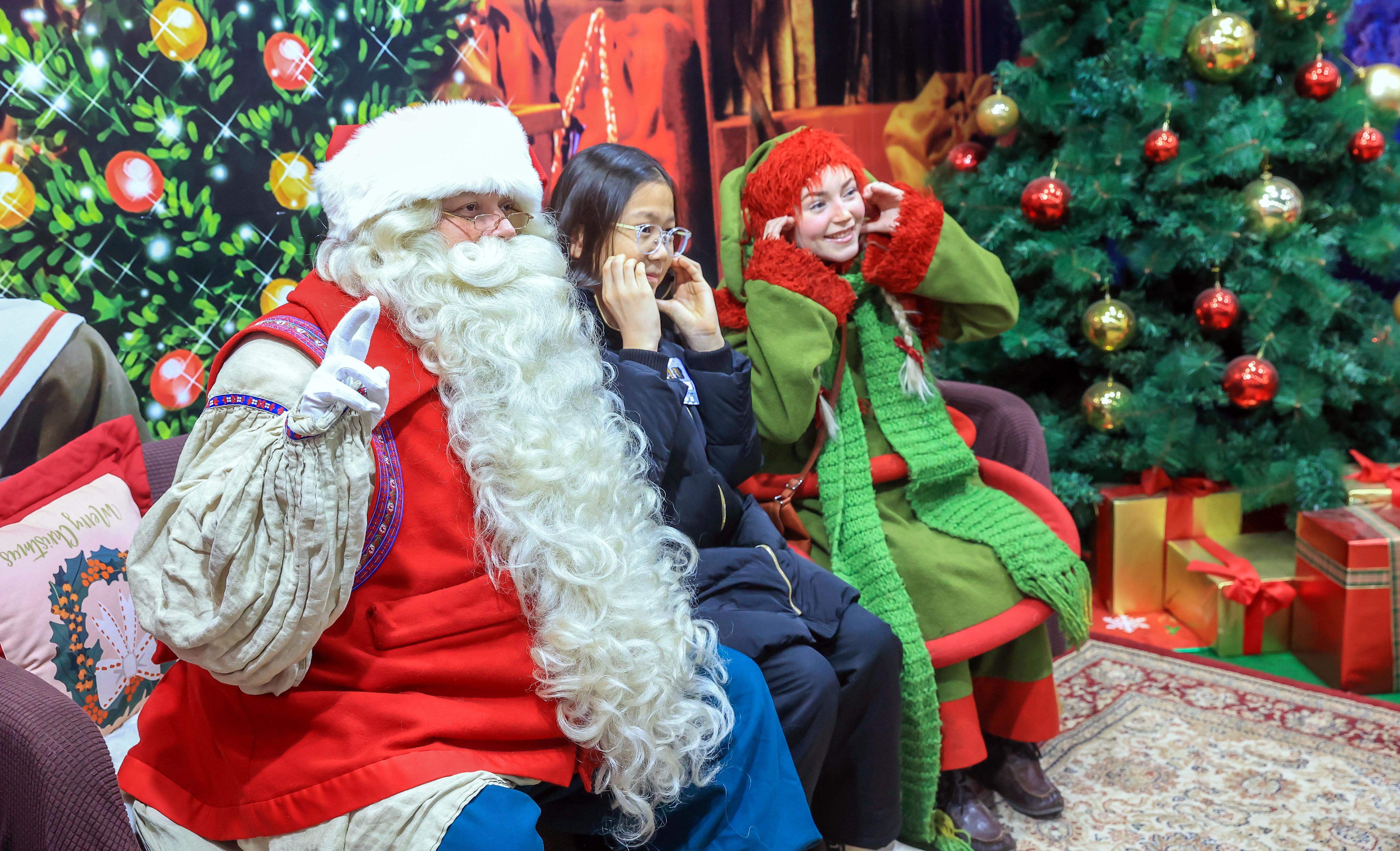 1월 19일 휴일을 찾아 화천산천어축제장을 방문한 관광객들이 축제장 내 산타우체국에서 핀란드 로바니에미시에서 온 산타클로스, 요정 엘프와 기념촬영을 하며 즐거운 시간을 보내고 있다.