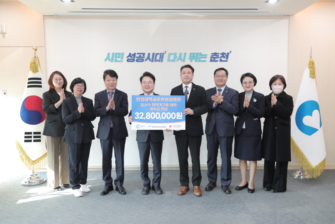 한림대학교춘천성심병원은 1월 17일 춘천시청 접견실에서 저소득 취약가구를 위한 기부금 3,280만 원을 춘천시에 전달했다.