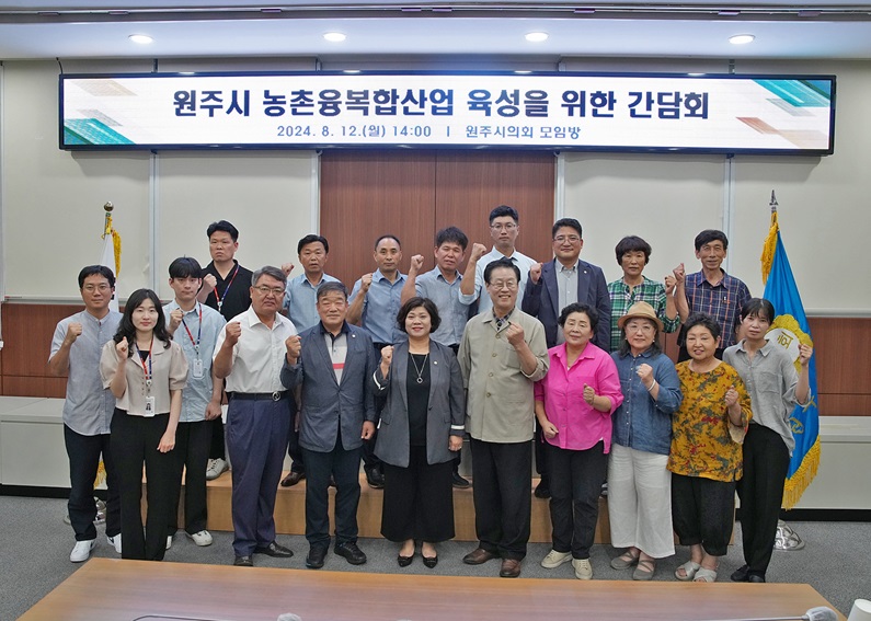 원주시의회는 지난 8월 12일 오후 2시 원주시의회 모임방에서 원주시 농촌융복합산업 육성을 위한 간담회를 개최하였다. 이번 간담회는 원주시 농촌융복합산업의 발전과 관련된 현안을 청취하고, 산업 육성을 위한 지원방안을 논의하기 위해 마련되었다. 간담회에는 원주시의회 차은숙 의원을 비롯해 김학배 산업경제위원장,...