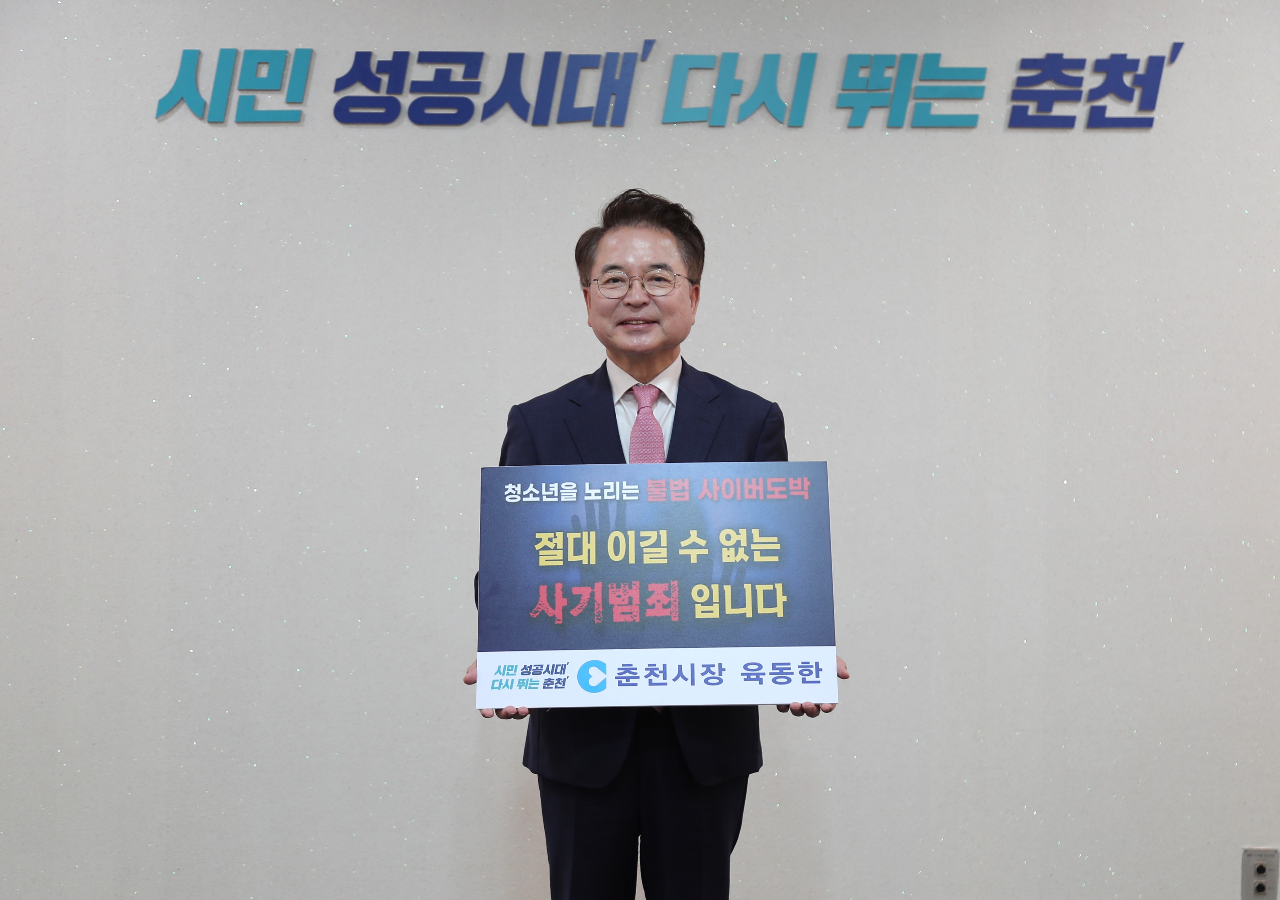 육동한 춘천시장은 8월 23일 청소년 불법 사이버 도박 근절을 위한 릴레이 챌린지에 동참했다. 다음 참여자로 육동한 춘천시장은 김홍규 강릉시장, 이종무 춘천경찰서장, 허남호 강원특별자치도춘천교육지원청교육장을 지목했다. 이번 챌린지는 지난 3월 서울경찰청에서 시작하여 오는 9월 17일(도박 중독 추방의 날)까지 계...