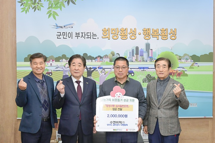 수엔비텍(주)(대표 이상훈)은 ‘횡성사랑 십시일반운동’에 동참하는 의미에서 지난 3월 19일 15시 50분 횡성군청을 방문하여 성금 200만 원을 기부했다.