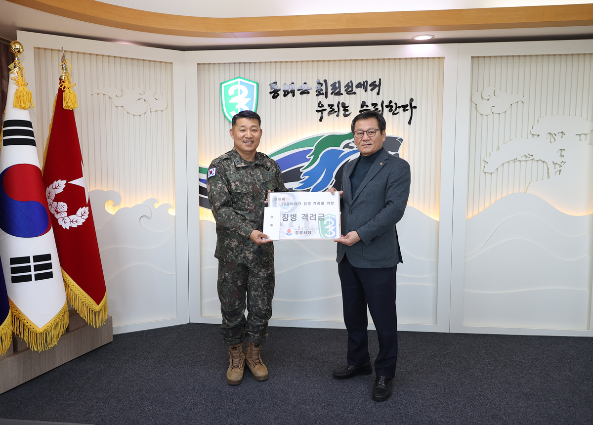 김홍규 강릉시장은 1월 16일 오후 강릉시 관할 부대를 방문, 장병 격려금을 전달하고 군부대 관계자들을 격려했다.