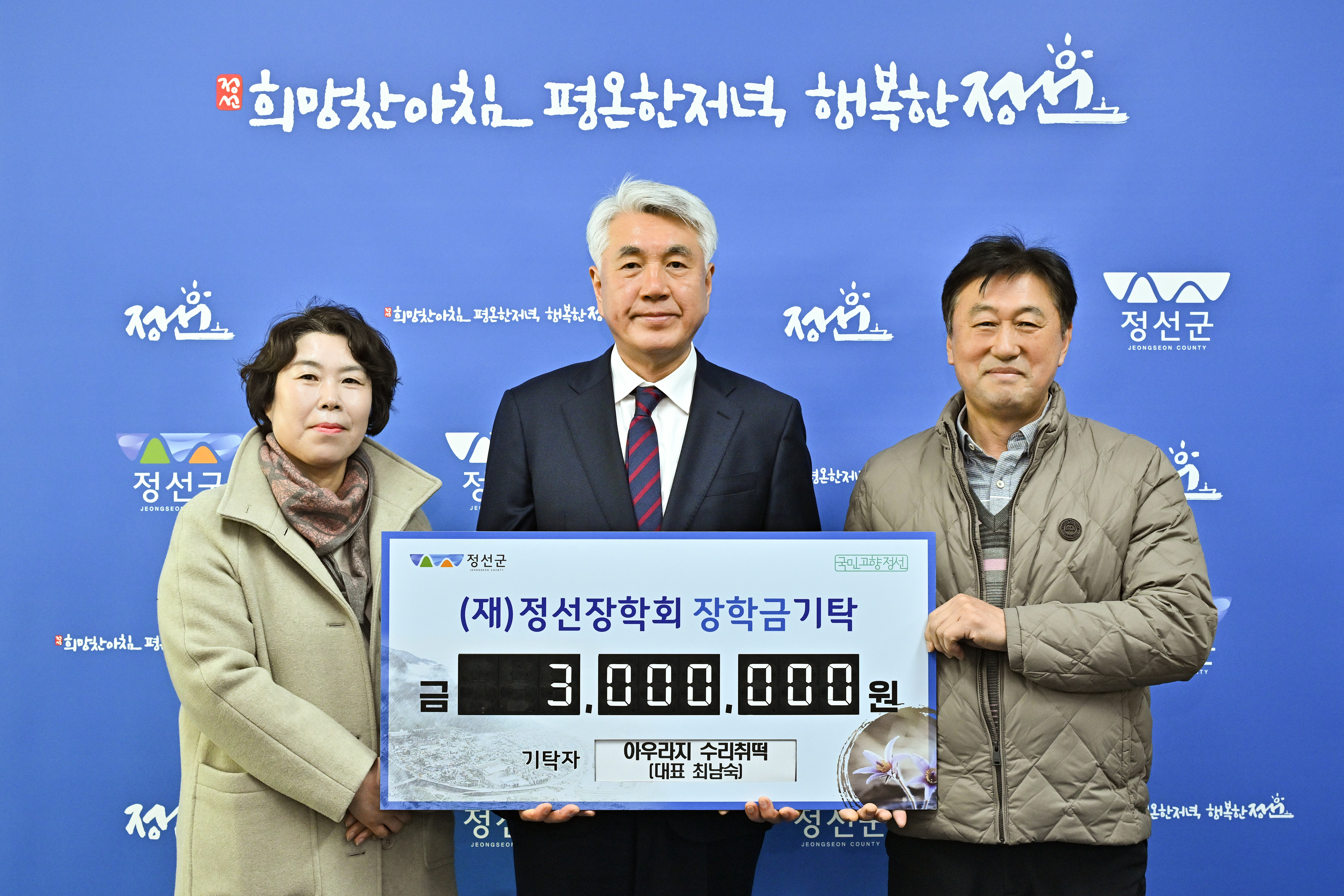 아우라지 수리취떡(대표 최남숙)은 지난 1월 3일 (재)정선장학회에 300만원을 기탁했다.