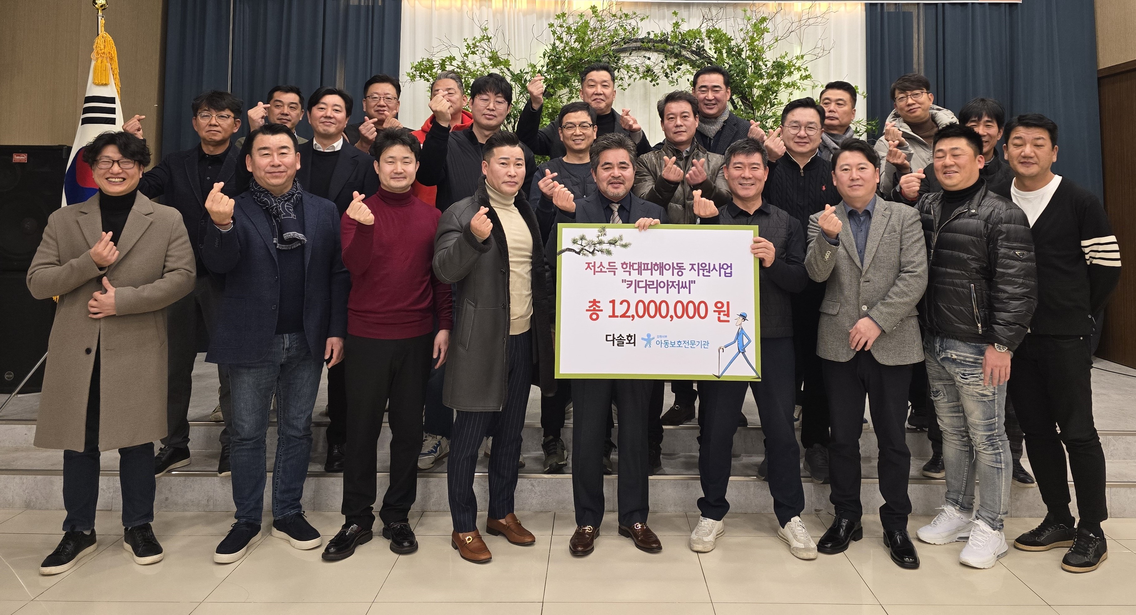 강원서부아동보호전문기관(관장 박미경)은 다솔회(회장 김대성)와 함께 ‘키다리 아저씨’사업 전달식을 진행했다고 1월 13일(월), 밝혔다. 다솔회 회원들이 십시일반 모은 마음으로 진행하는 ‘키다리 아저씨’사업은 원주시 내 학대피해아동의 교육비 및 생활비를 목적으로 매월 아동 통장에 10만 원씩 전달될 예정이며, 학...