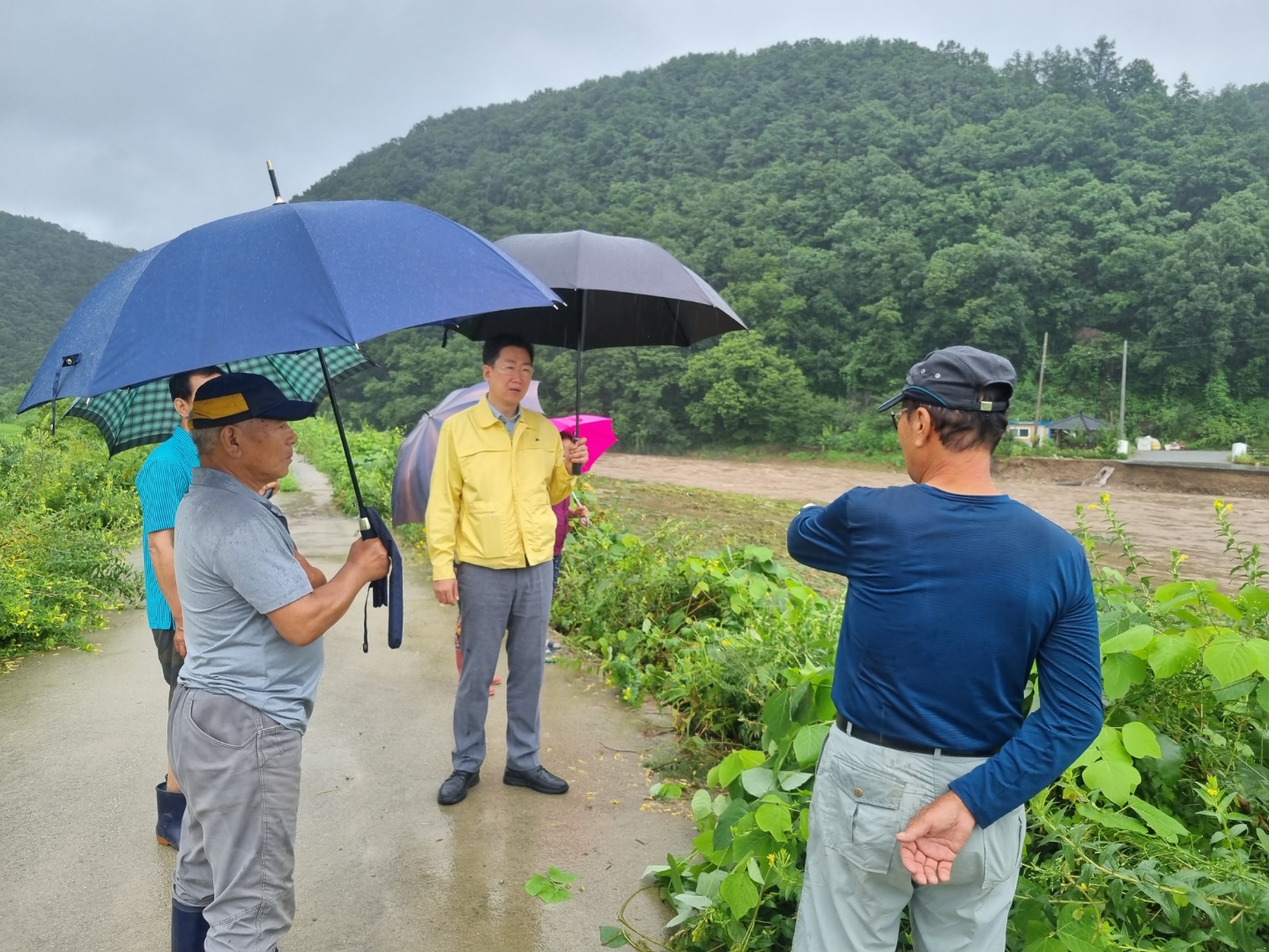 [강원사회복지신문 홍기한 기자]=육동한 춘천시장은 지난 8월 9일 폭우로 인한 피해 최소화를 위해 춘천시 소양로1가 26-8번지 현장을 예찰했다.
