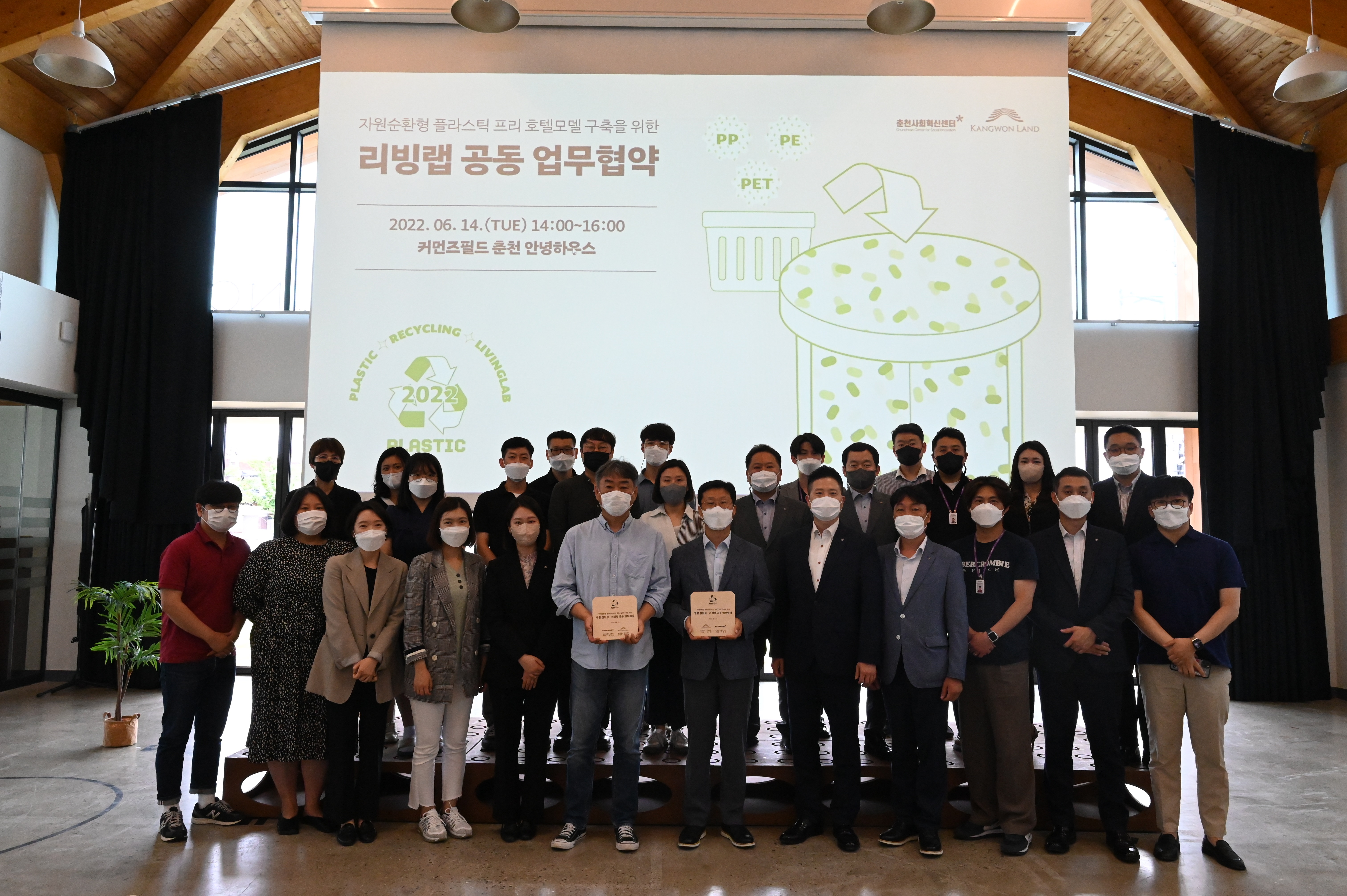 [강원사회복지신문 이정환 기자]=춘천사회혁신센터(센터장 : 박정환)은 지난 6월 14일 커먼즈필드 춘천 안녕하우스에서 (주)강원랜드 (부사장 : 심교섭)과 함께 도내 최초 '자원순환형 플라스틱 프리 호텔 구축'을 위한 리빙랩 프로젝트 공동 업무협약을 진행했다.