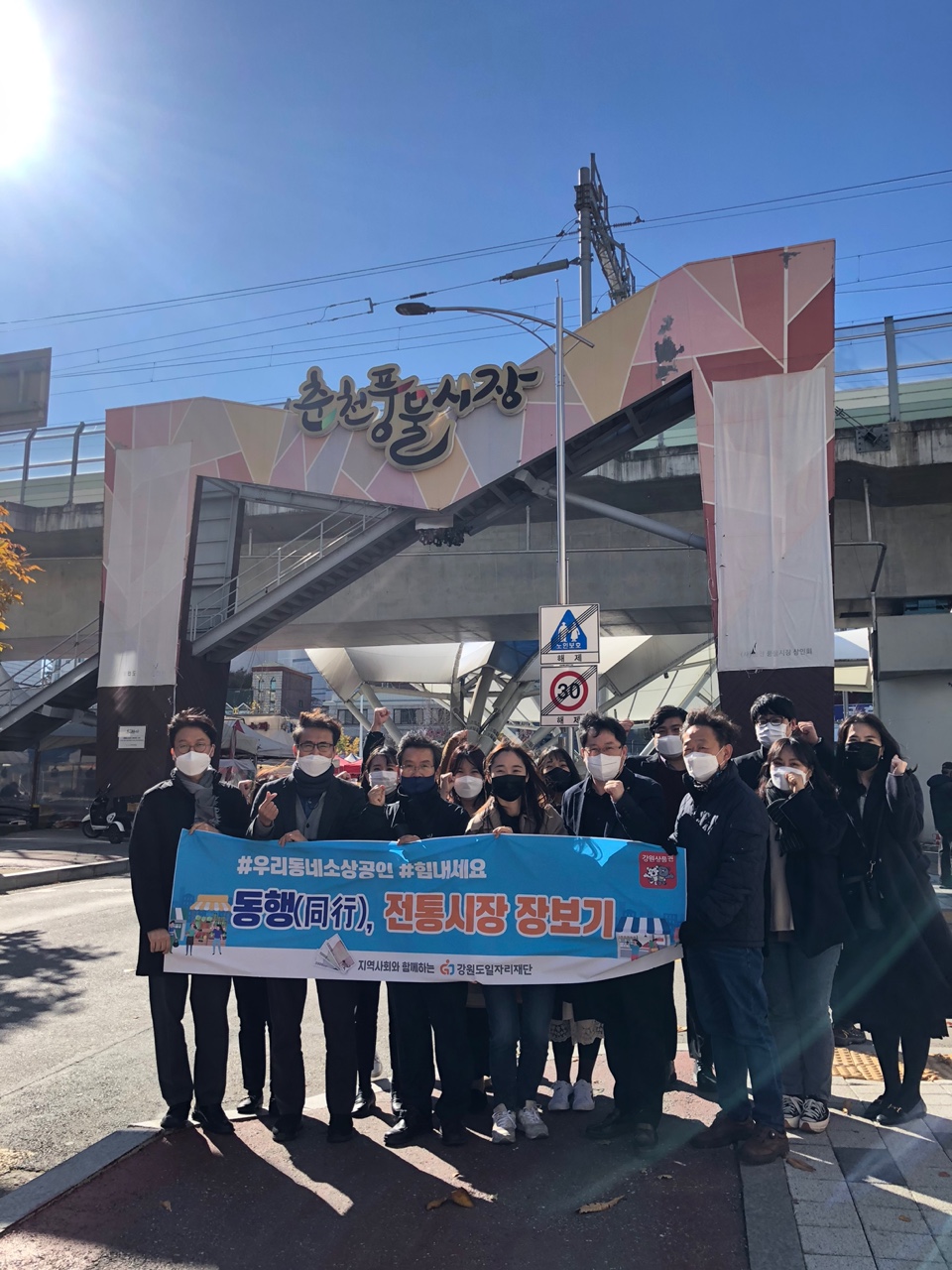 [강원사회복지신문 서은진 기자]=전통시장 장보기 연중 정례행사 등 지역사회협력 활동 동참 (재)강원도일자리재단(대표이사 노명우)은 지난 11월 12일 춘천 풍물시장에서 '전통시장 장보기'를 하며 우리동네 소상공인과 골목상권 실물경기 점검 등 지역경제 활성화에 나섰다. 강원도일자리재단은 "코로나일상으로 변화된 상...