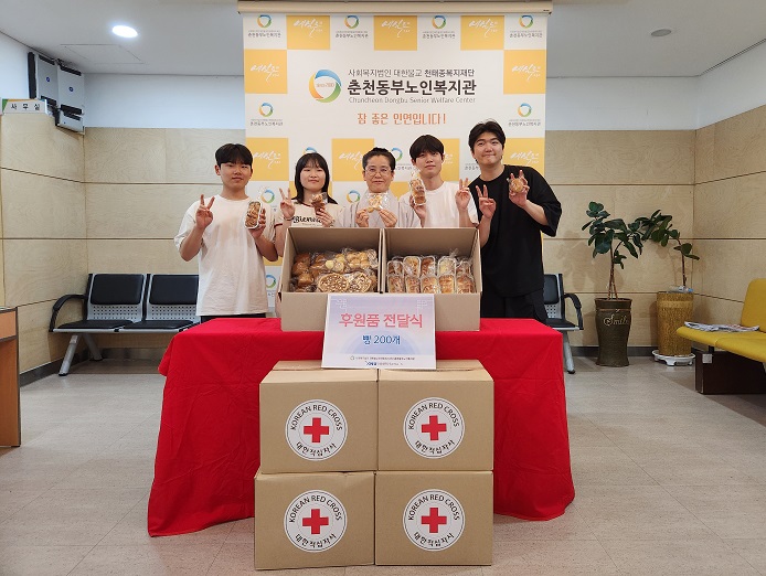 춘천 강원대 간호학과 봉사 동아리 ‘하나스’에서 지난 6월 21일 직접 만든 소보루 빵 200개를 춘천동부노인복지관에 전달했다. 춘천 강원대 간호학과 봉사 동아리 ‘하나스’는 최근 춘천동부노인복지관과 노인학대예방·환경보호캠페인을 진행하는 등 활발한 협업을 진행하고 있으며 전달한 빵은 지역 내 재가 어르신 대상...