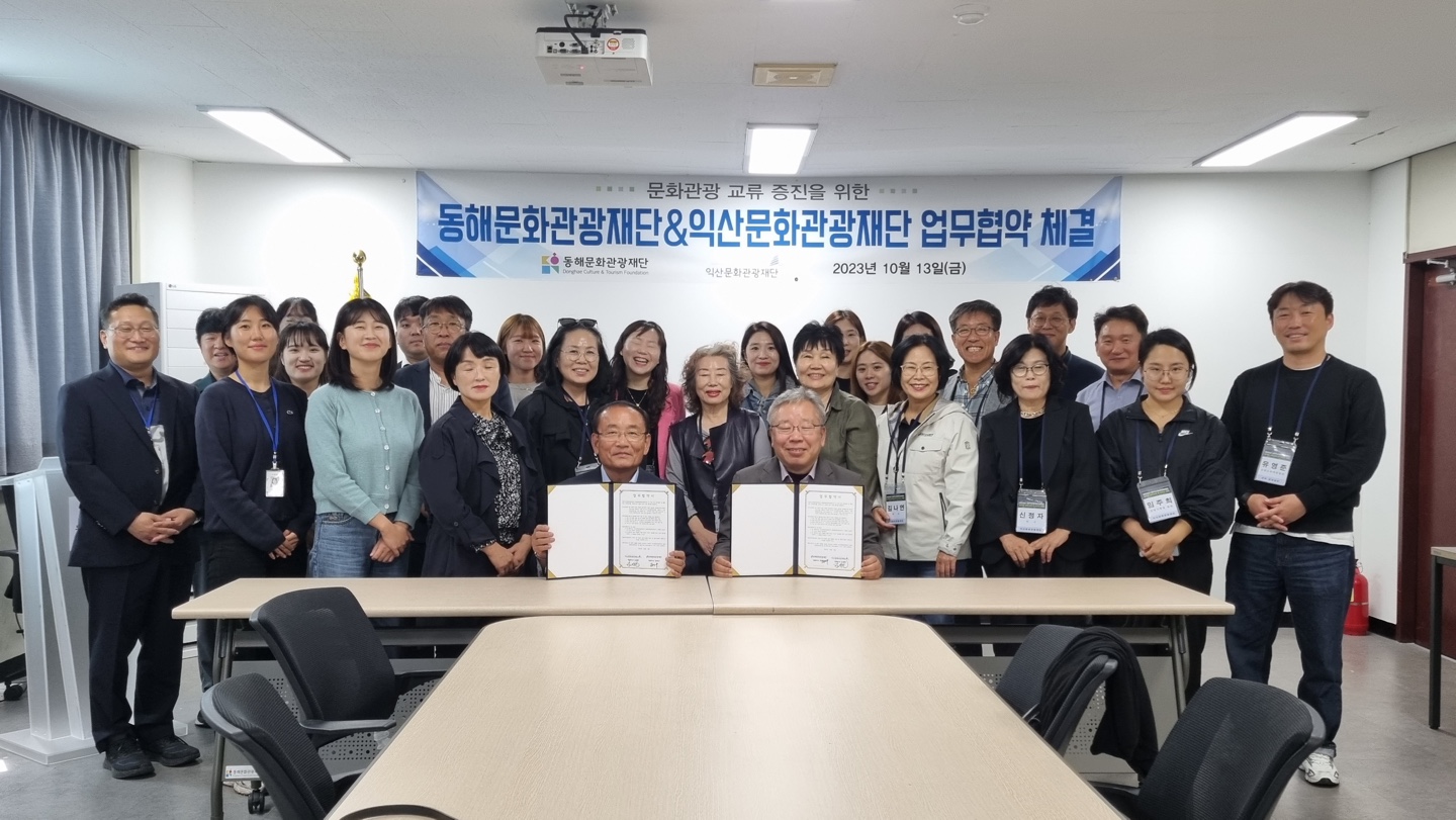 [강원사회복지신문 김종한 기자]=동해시-익산시 지역관광 활성화를 위해 양 기관 긴밀한 협력 동해문화관광재단(대표이사 정연수)은 지난 10월 13일 동해문화관광재단 3층 회의실에서 익산문화관광재단(대표이사 김세만)과 업무협약(MOU)을 체결하였다고 밝혔다. 이날 열린 업무 협약식에서는 양 도시 간 연계 문화관광 교류...