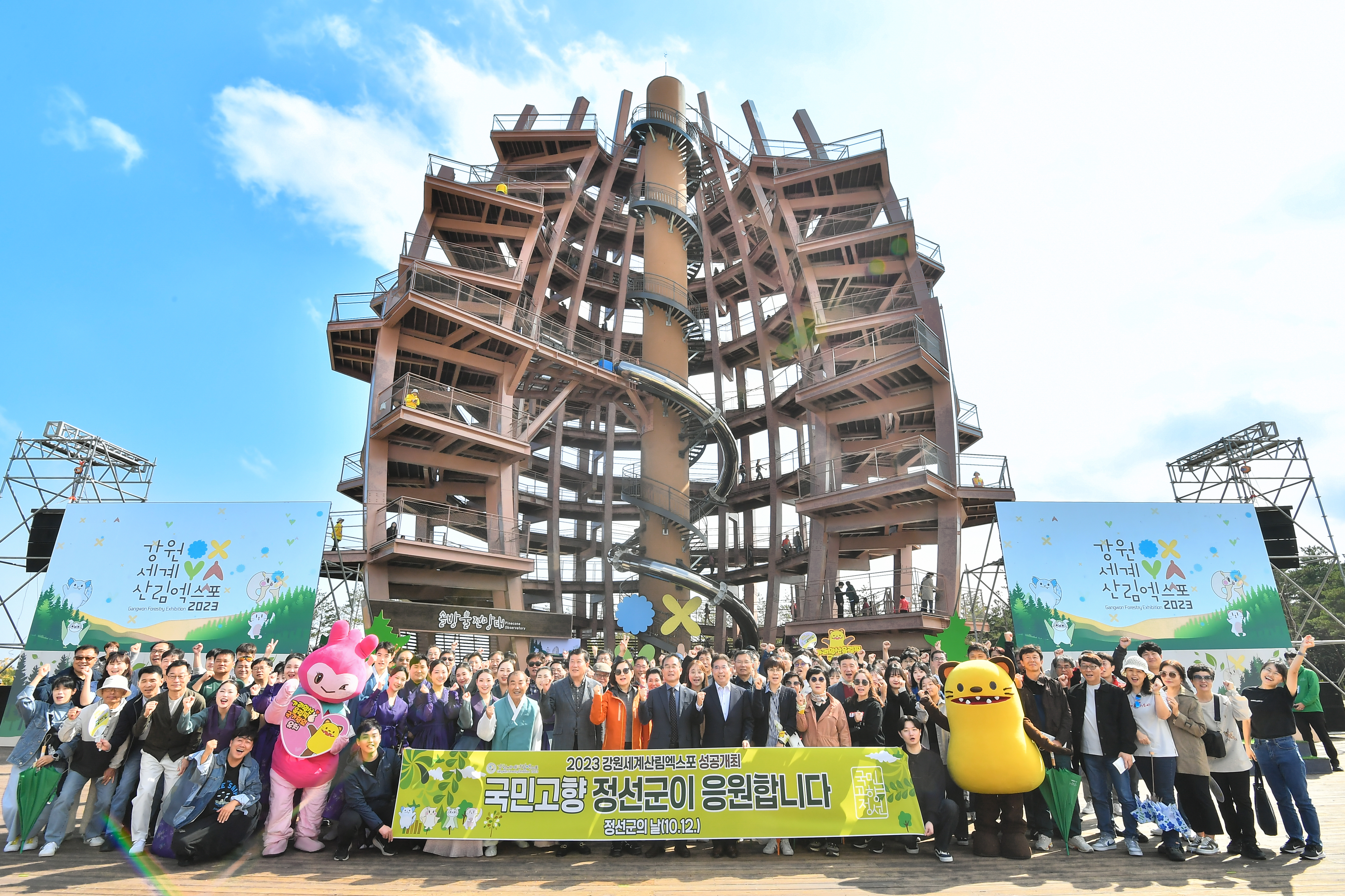[강원사회복지신문 김도연 기자]=정선군이 지난 10월 12일 고성군 세계잼버리수련장에서 '2023 강원세계산림엑스포 성공 기원 정선군의 날 행사'를 개최했다. 이번 행사에는 강선구 정선부군수와 최종수 정선아리랑문화재단 이사장 및 관계공무원, 민간단체 회원 등 500여명이 행사장을 방문해 산림엑스포 성공을 기원하는 마...