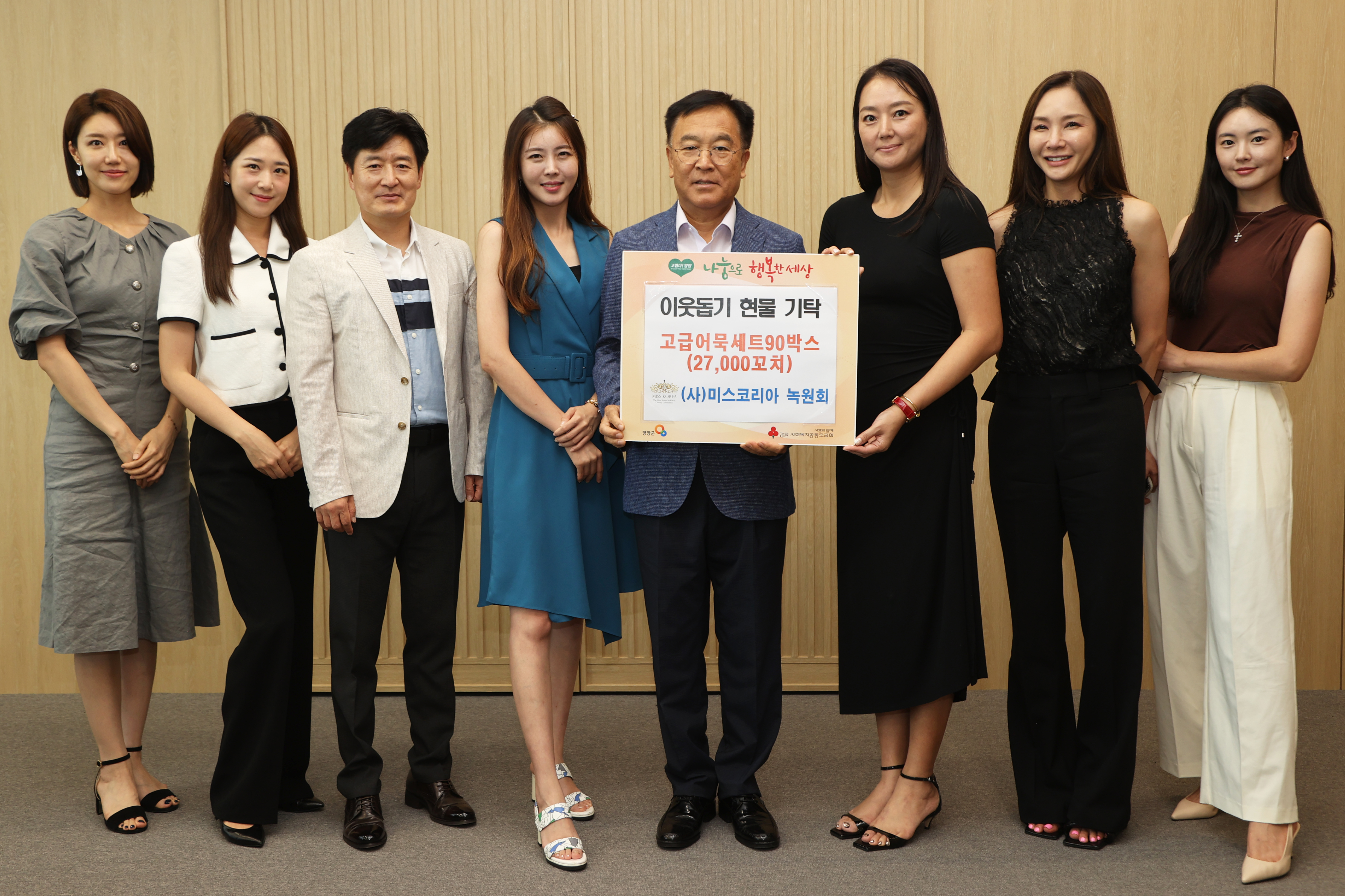 역대 미스코리아 단체 녹원회 7월 19일 양양군 방문, 이웃돕기물품 전달 우리나라 역대 미스코리아 선후배들이 서핑 성지인 양양군을 방문해 어려운 이웃을 위한 기부활동을 펼쳤다. 사단법인 미스코리아 녹원회(회장 이정민)가 7월 19일 오후 2시 양양군청을 방문, 김진하 양양군수에게 어려운 이웃들에게 전해 달라며 어묵...
