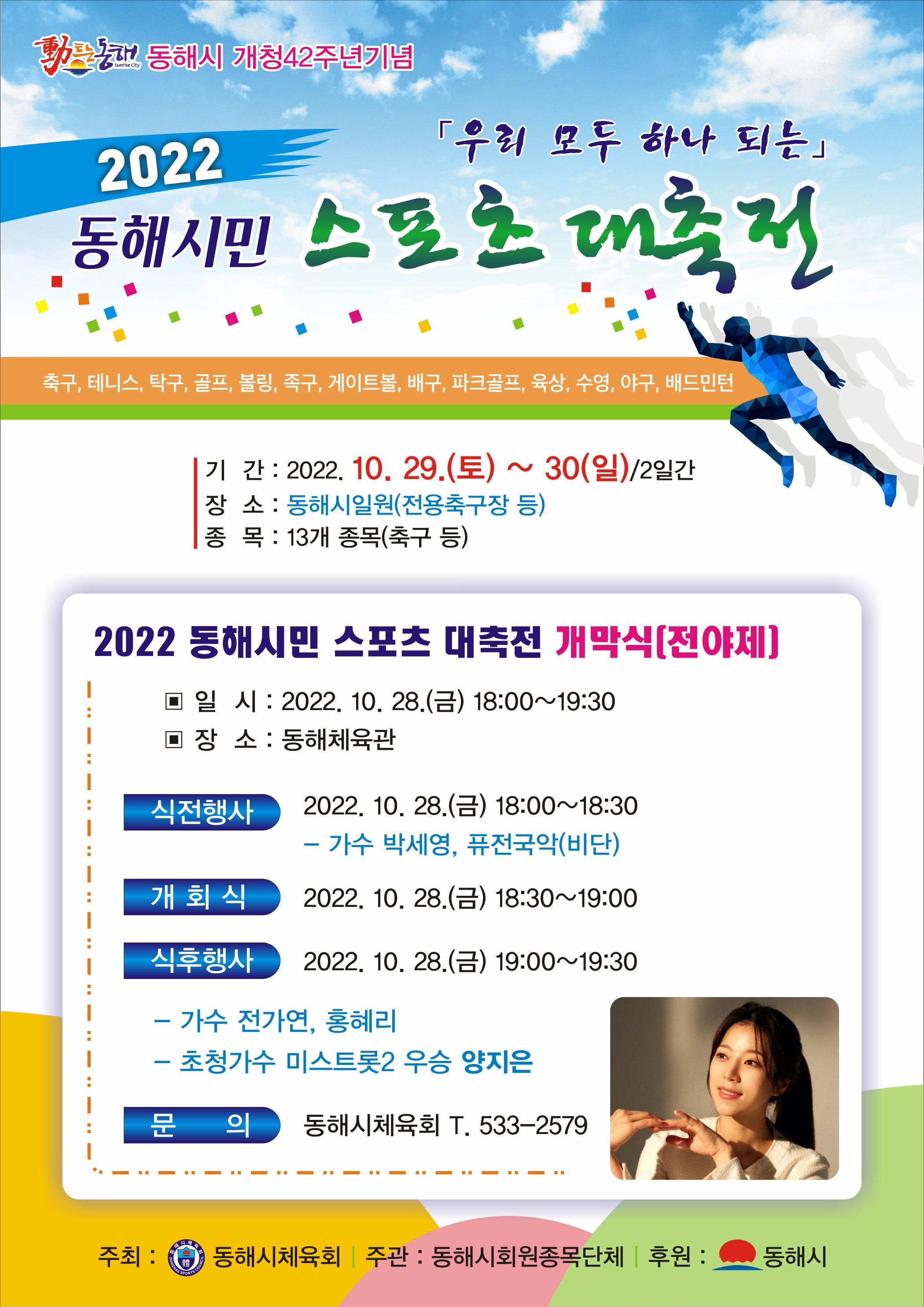 [강원사회복지신문 김종한 기자]='제74회 세계3쿠션 당구선수권' 대회, 2022 동해시민 '스포츠 대축전' 개최 '관광휴양도시' 동해시(시장 심규언)가 대단위 스포츠 행사 개최를 통해 스포츠 중심도시로서 위상을 펼치고 있다. 세계 최고 권위를 자랑하는 '제74회 세계3쿠션 당구선수권' 대회가 지난 2014년 서울대회 이후로 ...