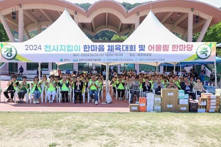 6월 26일 오전 10시 원주 양궁장 시민서로돕기 천사운동본부에서 주관하는 ‘2024 천사지킴이 한마음 체육대회 및 어울림 한마당’이 지난 6월 26일 오전 10시 원주 양궁장에서 개최되었다. 이날 행사는 원주를 대표하는 풀뿌리 나눔 운동 ‘시민서로돕기 천사운동’의 자원봉사단체 ‘읍·면·동 천사지킴이’회원과 관계 공...