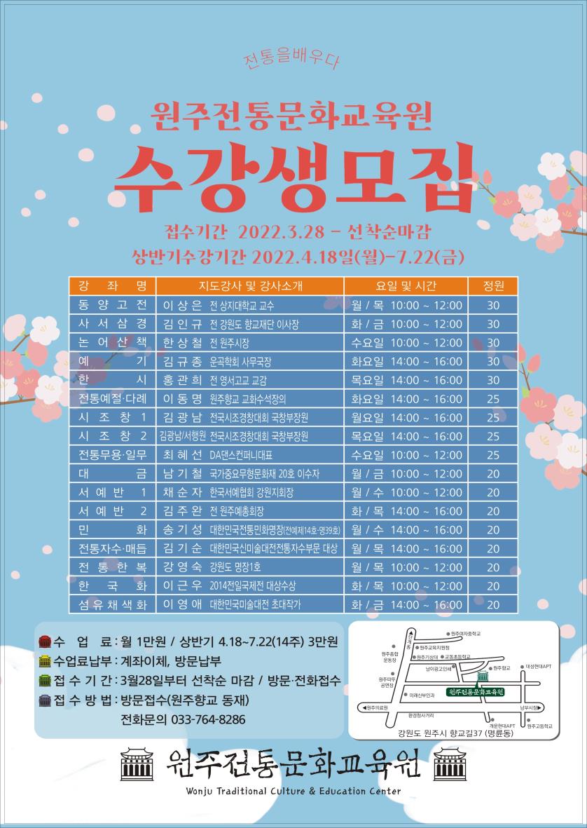 [강원사회복지신문 이정환 기자]=4월 18일부터 교육·체험 프로그램, 특강 등 운영 원주시역사박물관(관장 김흥배)는 시민들에게 전통문화 체험 기회를 제공하기 위해 원주전통문화교육원을 4월 18일부터 시범 운영한다고 밝혔다. 역사박물관은 옛 향교 교육관을 원주전통문화교육원으로 리모델링하고 원주향교에 위탁해 교육...