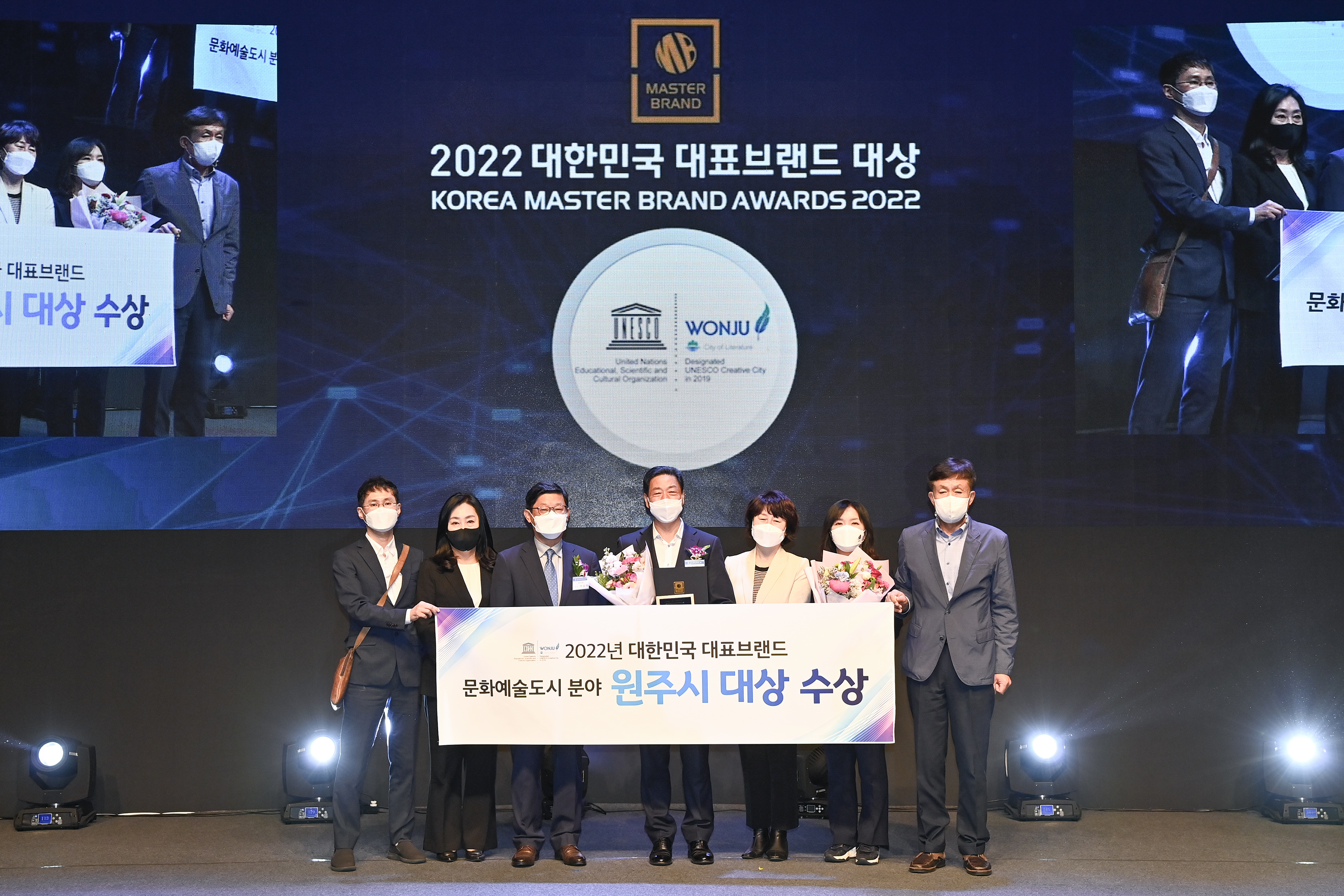 [강원사회복지신문 서은진 기자]=문화예술도시 분야 후보 도시 30개 중 최우수 점수로 대상 수상 원주시가 지난 4월 19일 서울 신라호텔에서 개최된 '2022 대한민국 대표브랜드 시상식'에서 문화예술도시 분야 '대상'에 선정되는 영예를 안았다. 2022 대한민국 대표브랜드 대상은 iMBC, 동아닷컴, 한경닷컴이 주최하고 동아일...